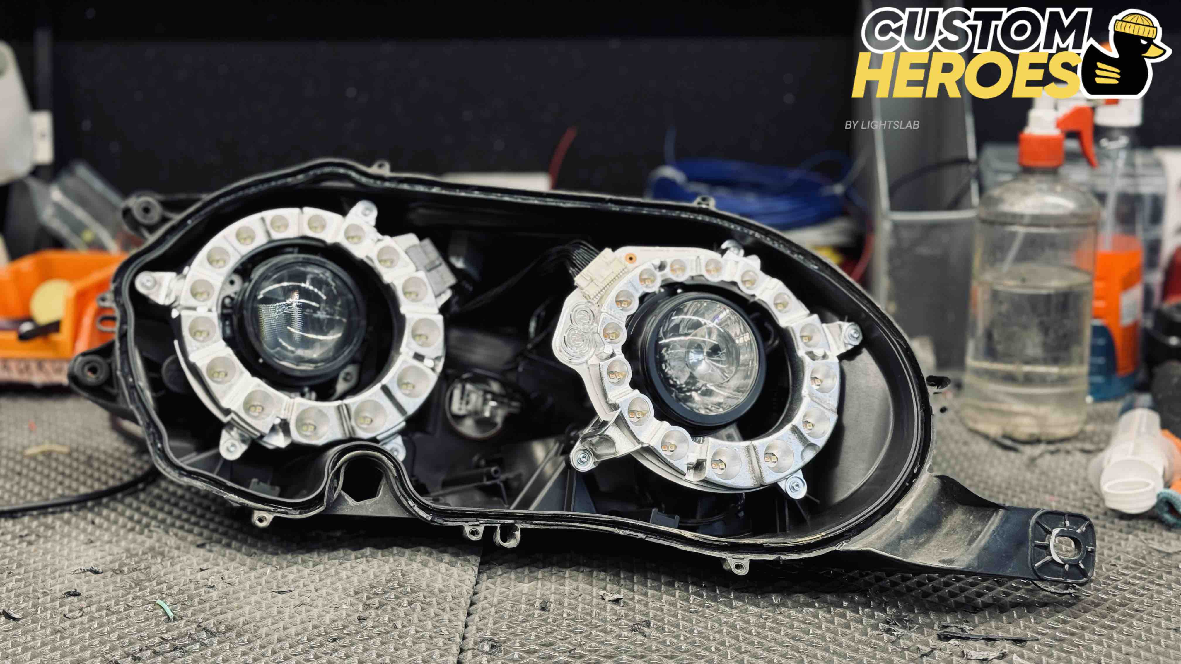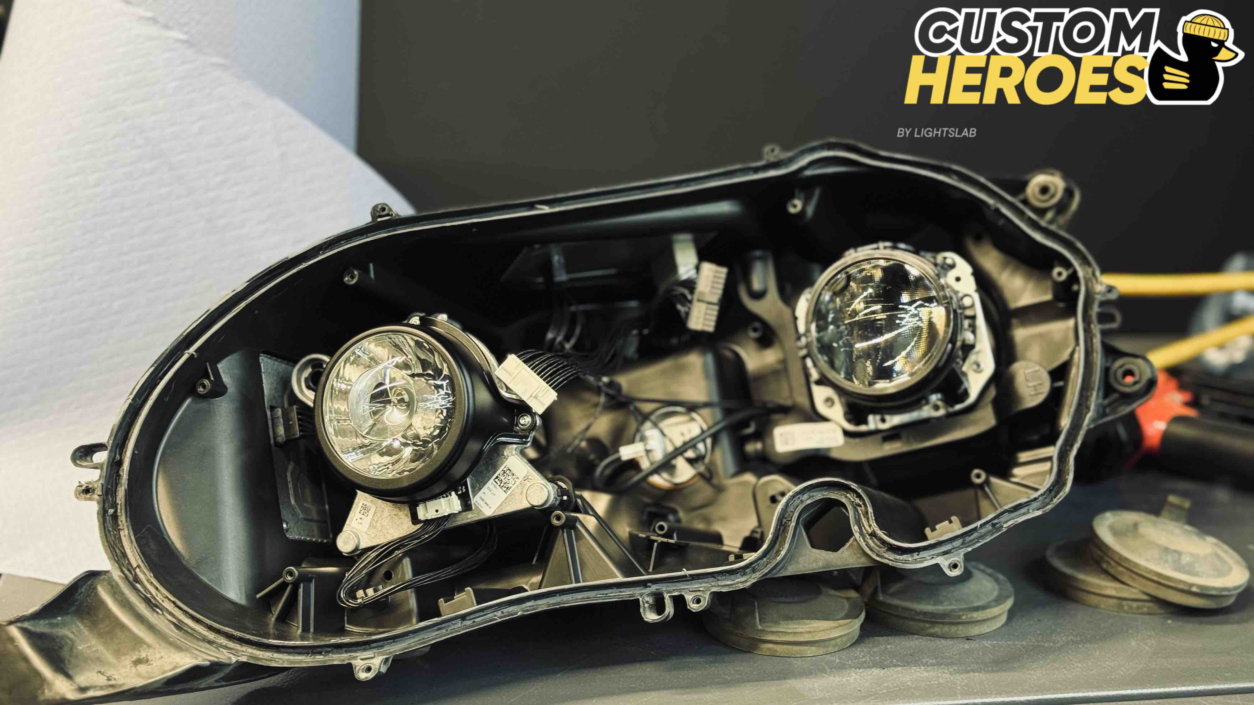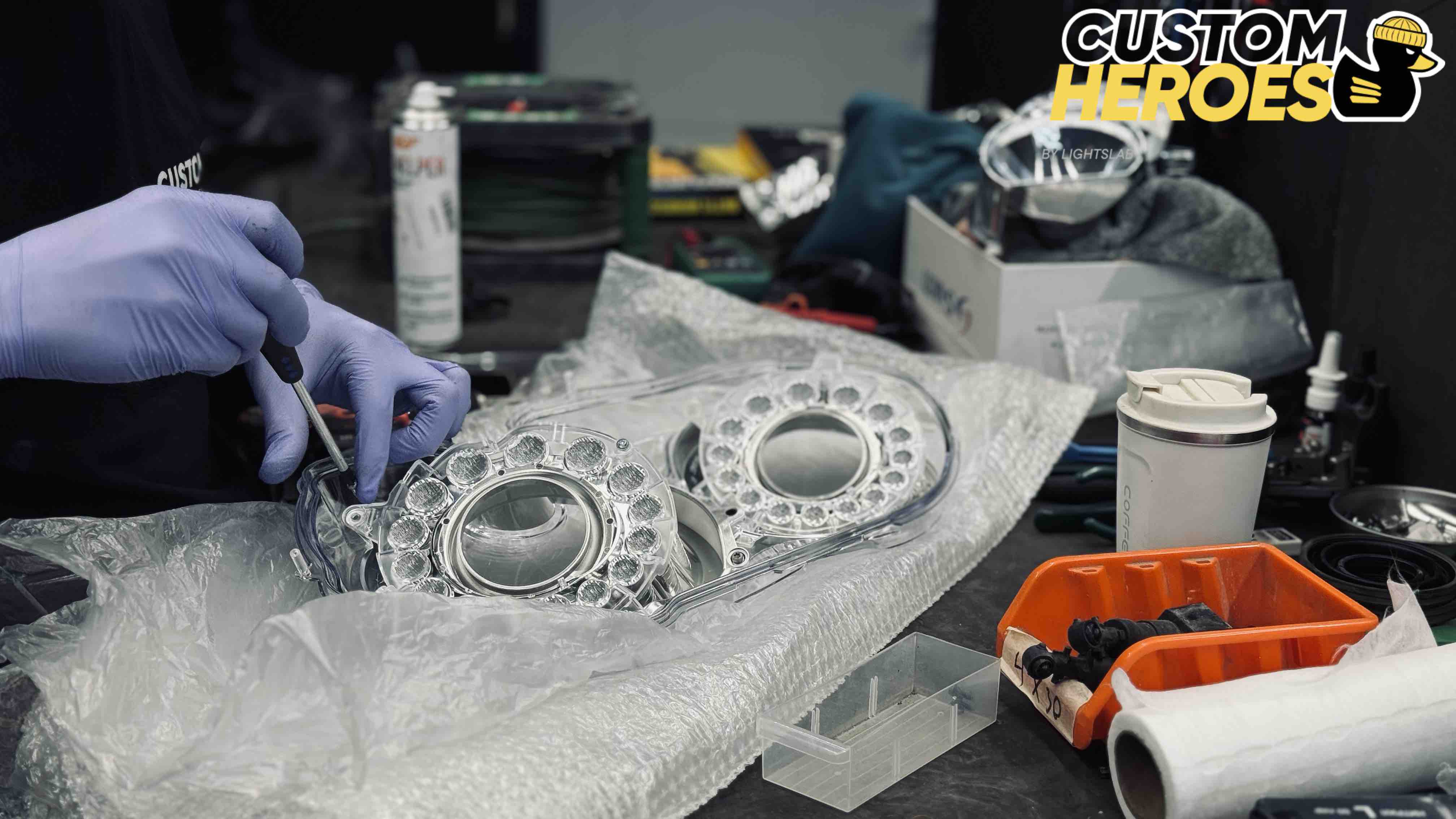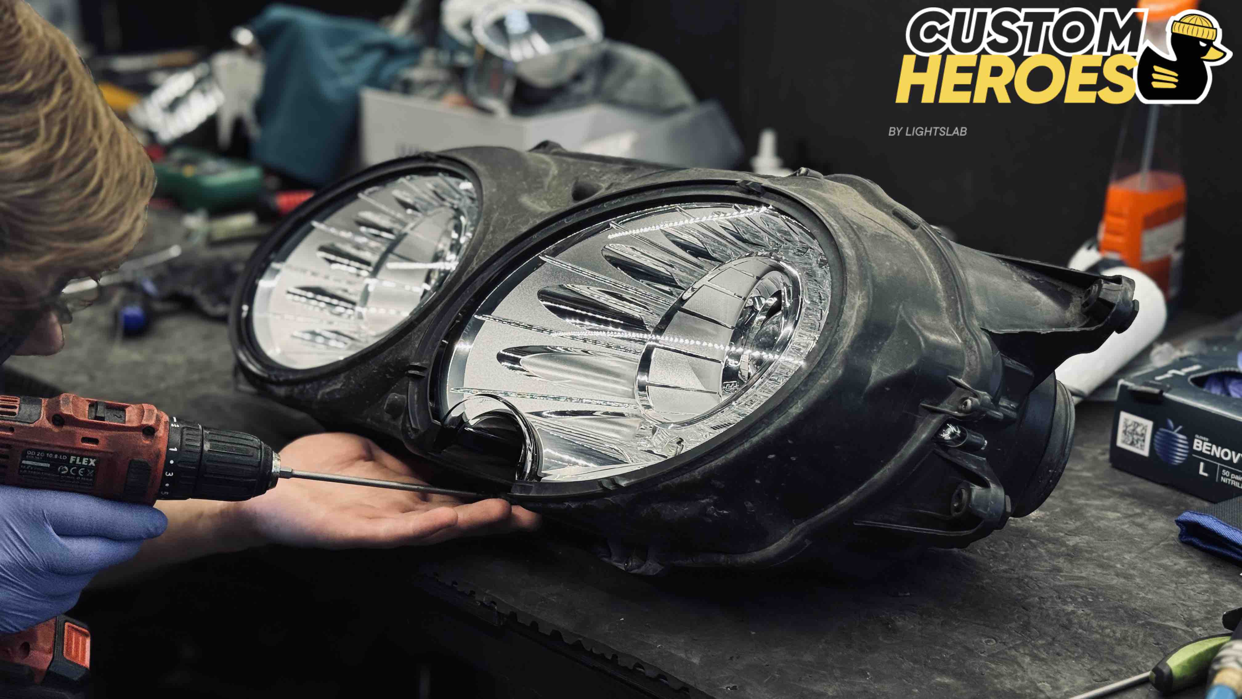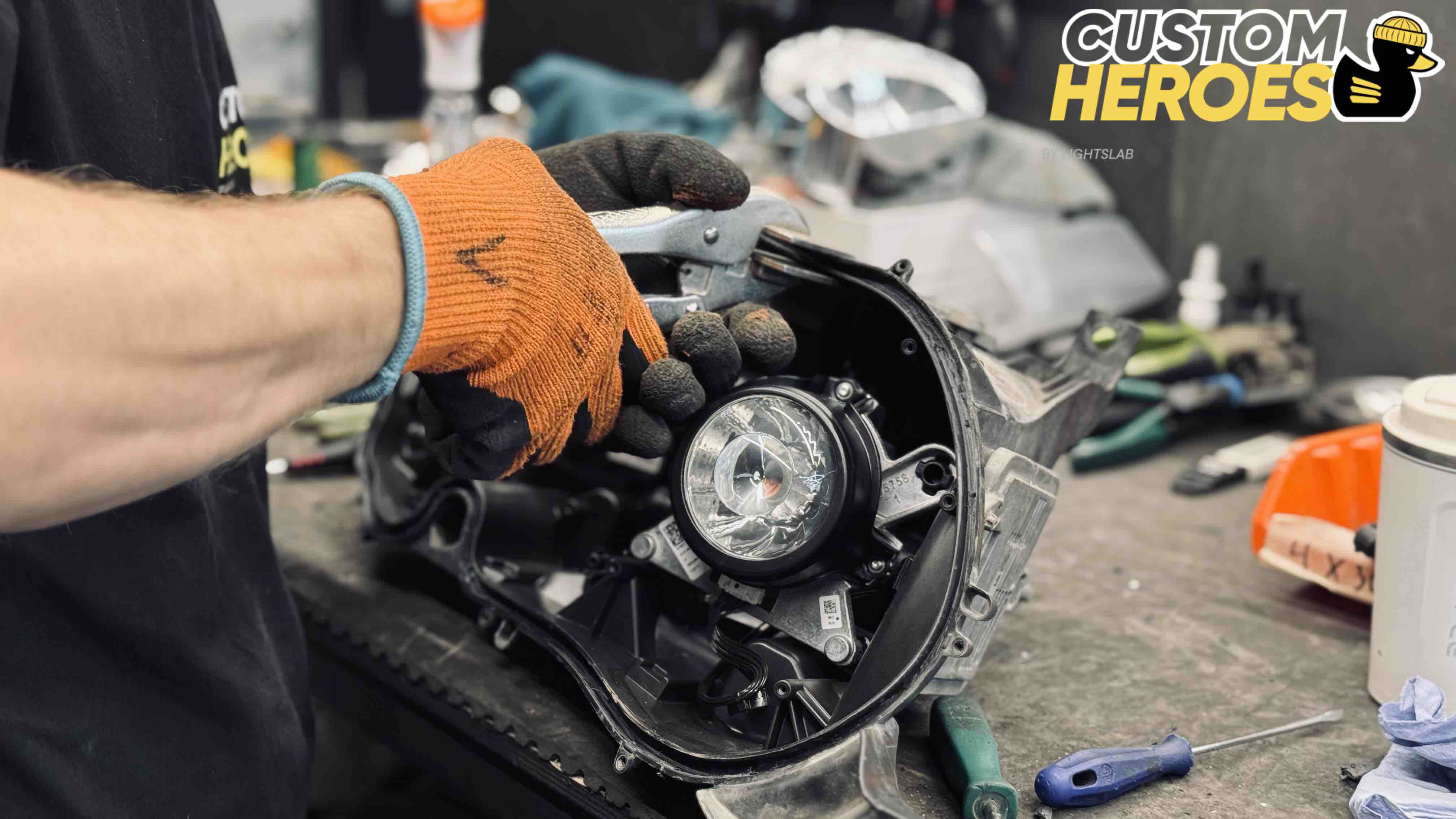 - аккуратное снятие старых стекол с сохранением целостности корпуса фары;