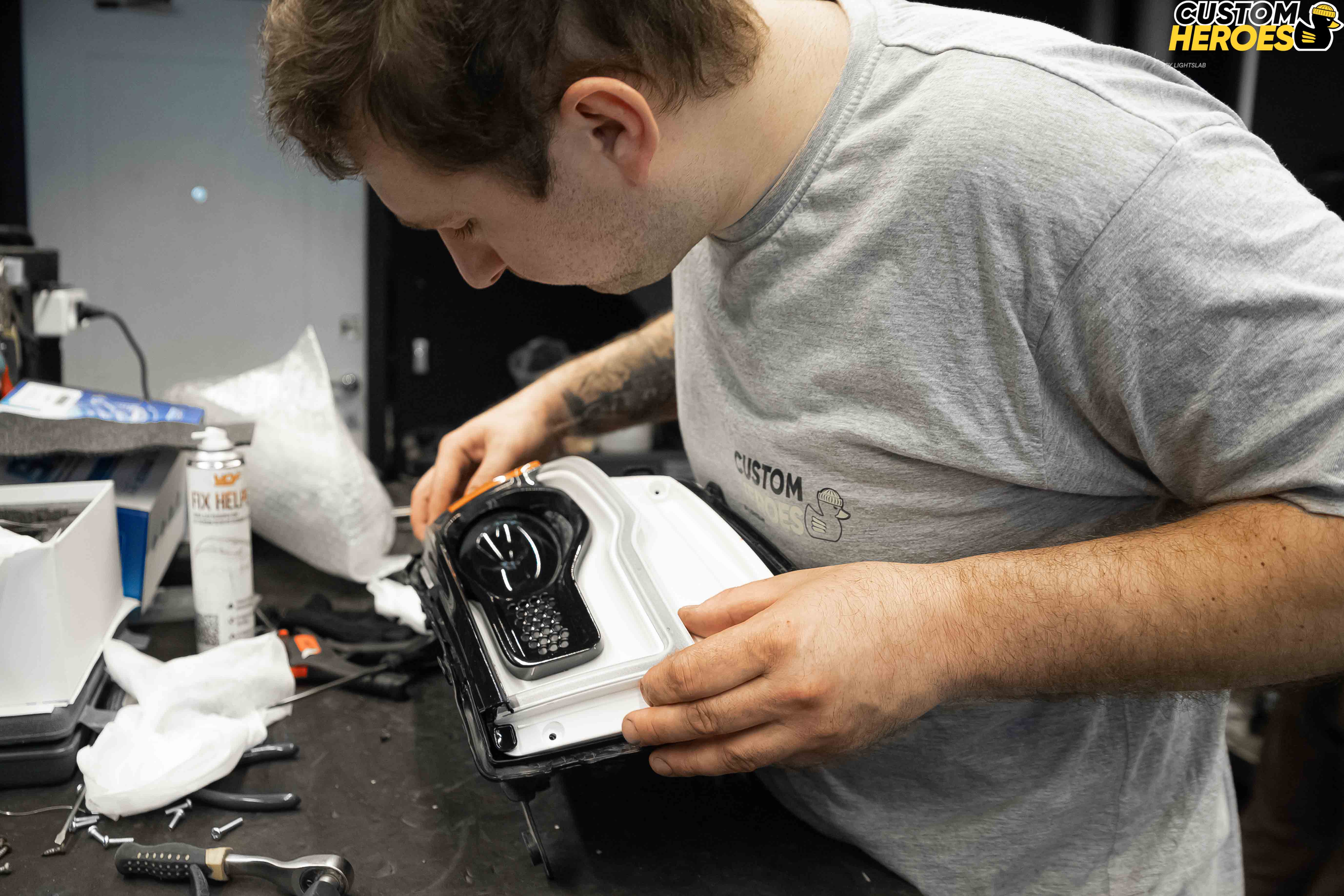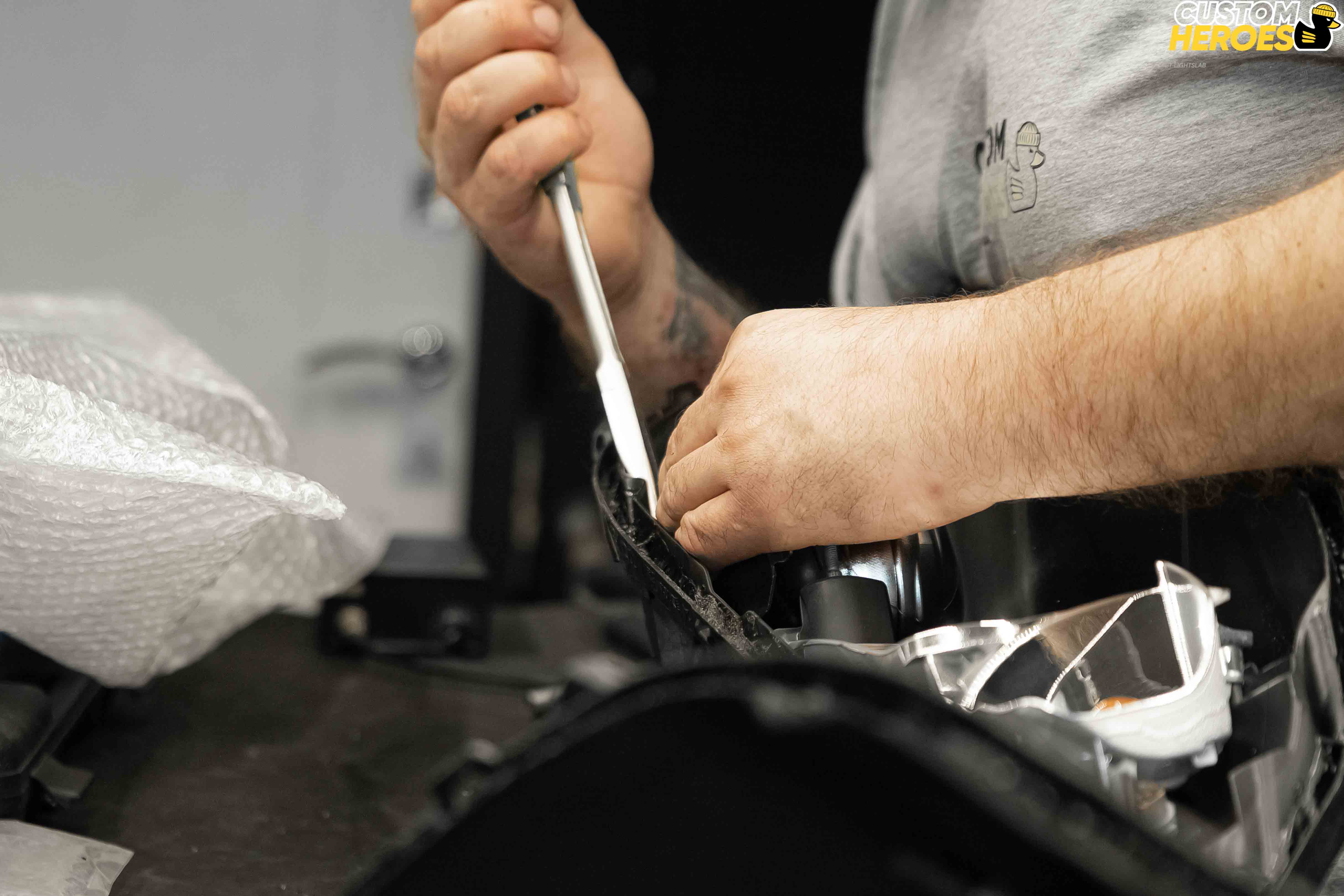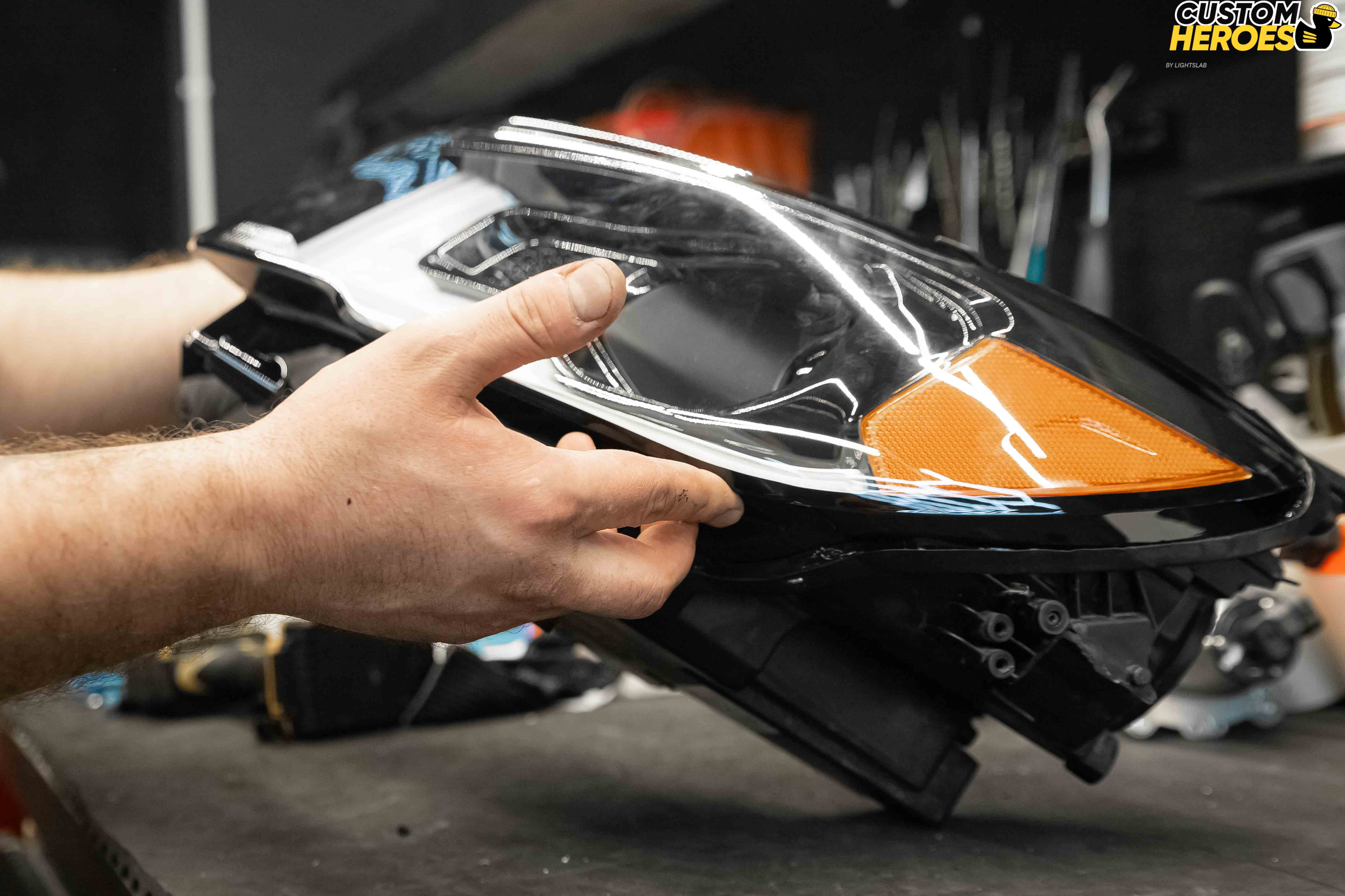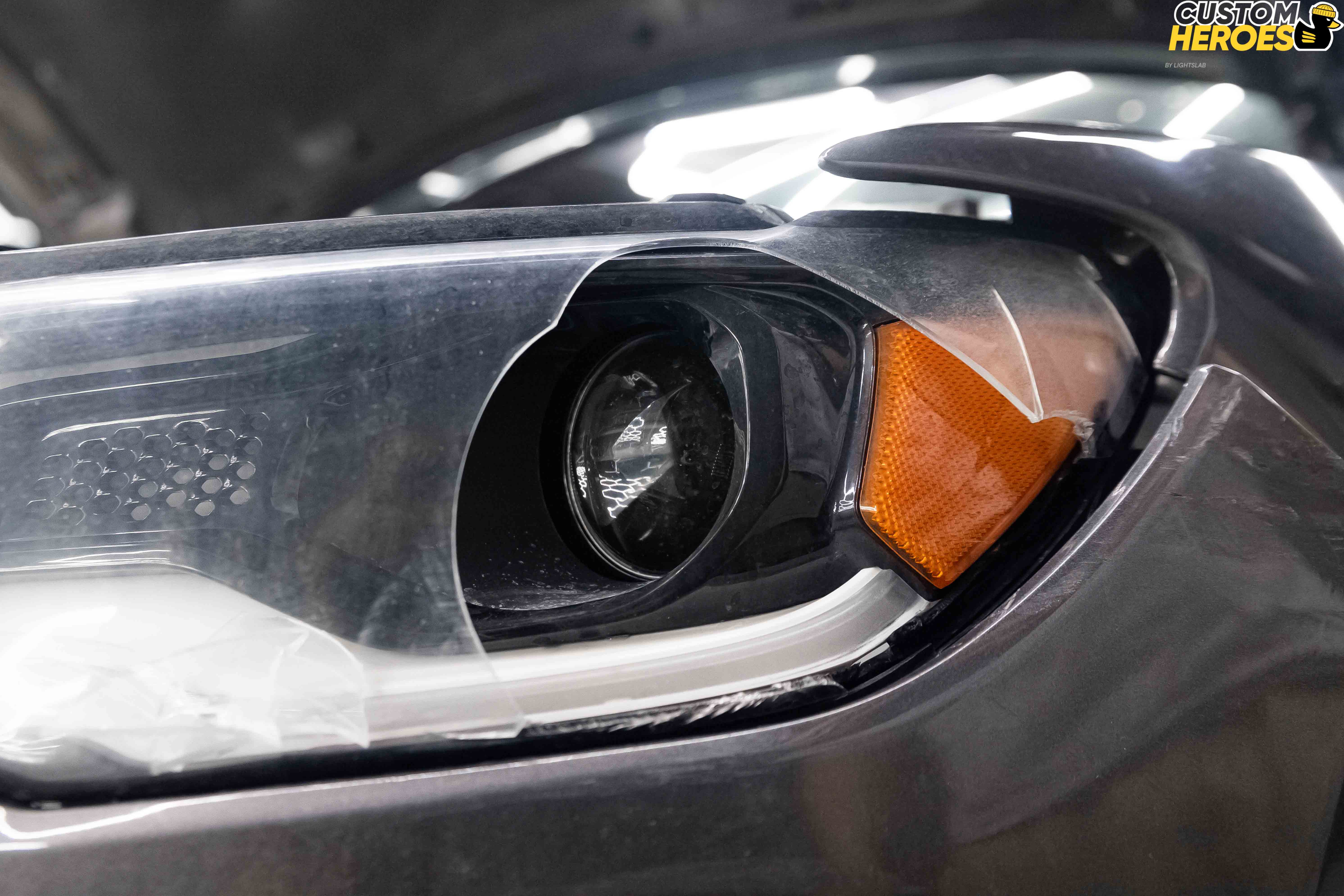 - Аккуратно сняли фару с автомобиля, подготовили рабочее место.