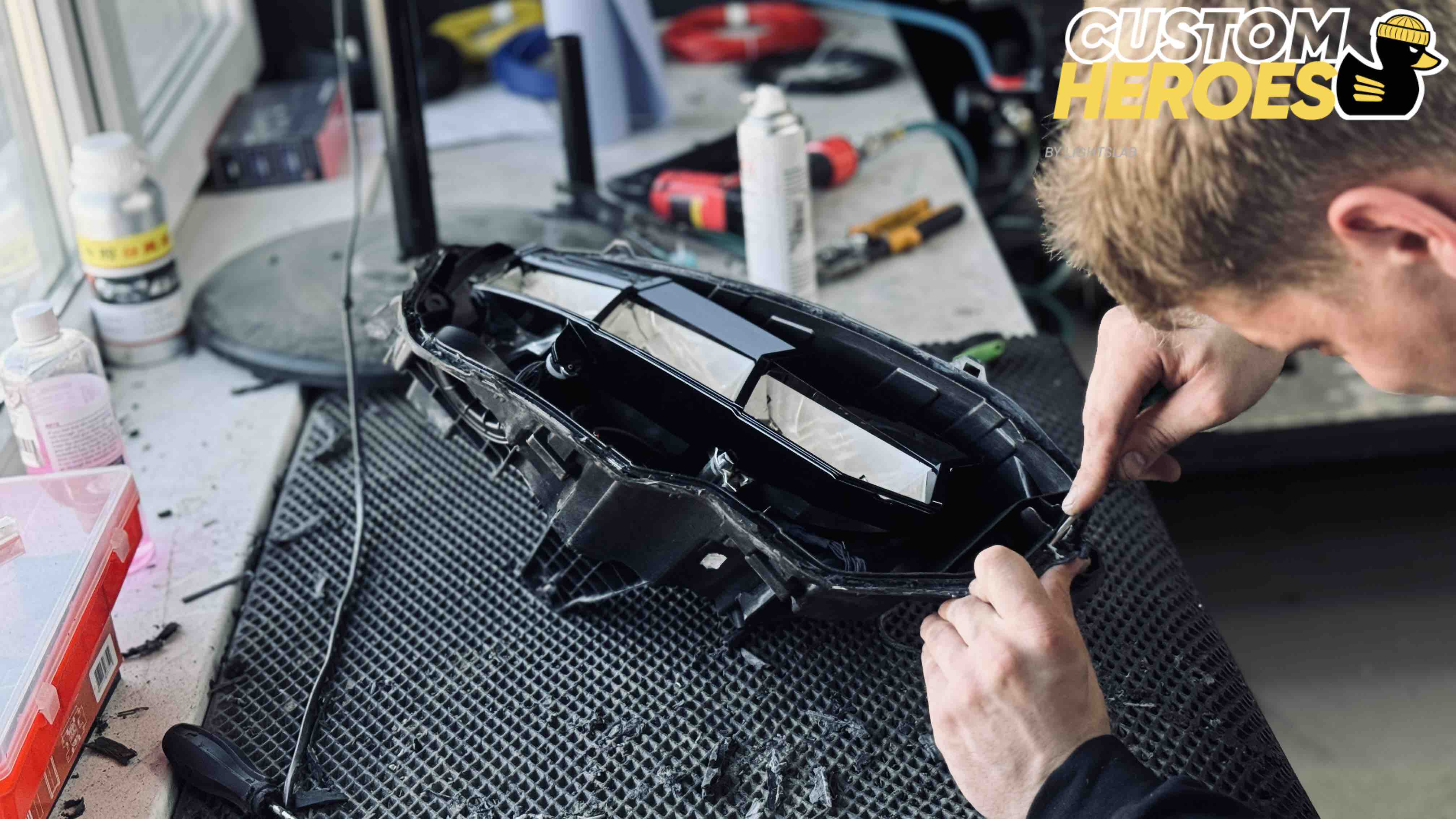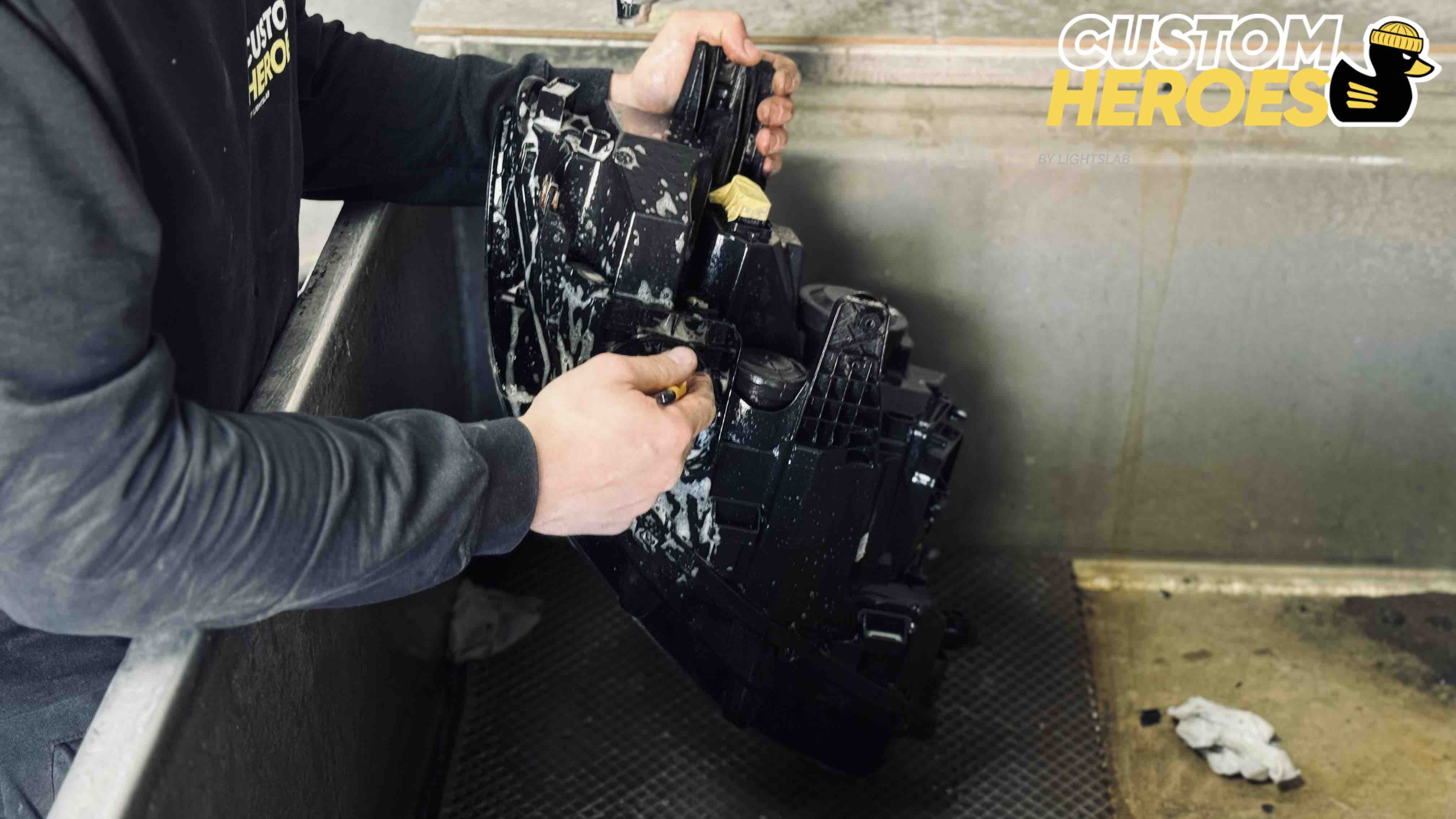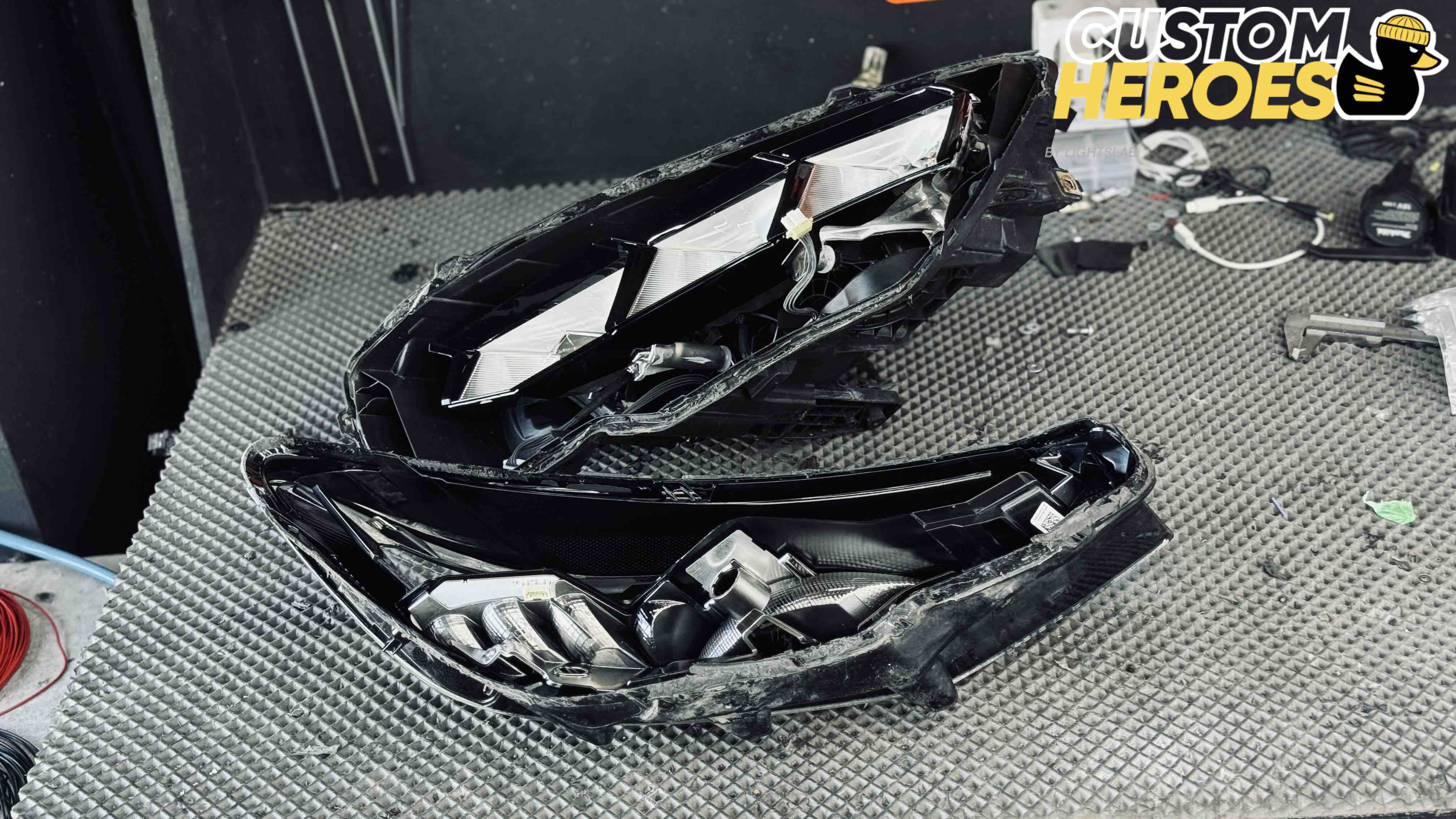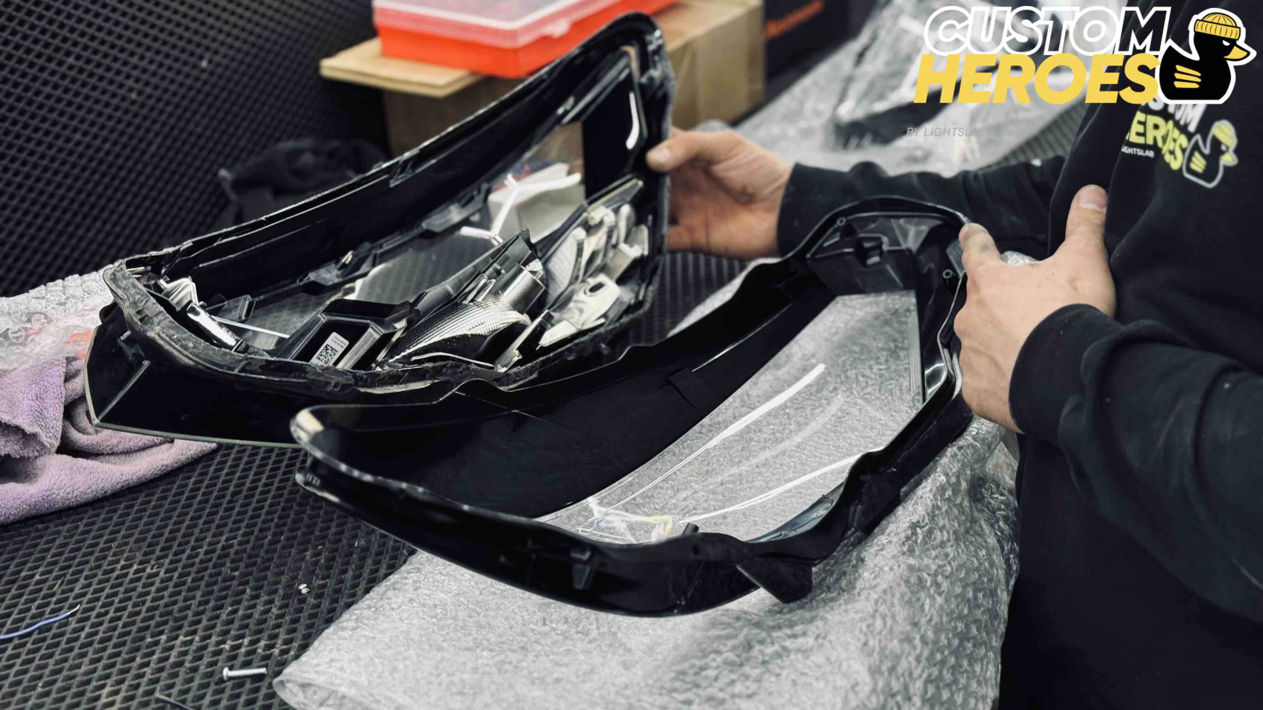 - Демонтаж фар и их разборка с использованием промышленного оборудования;