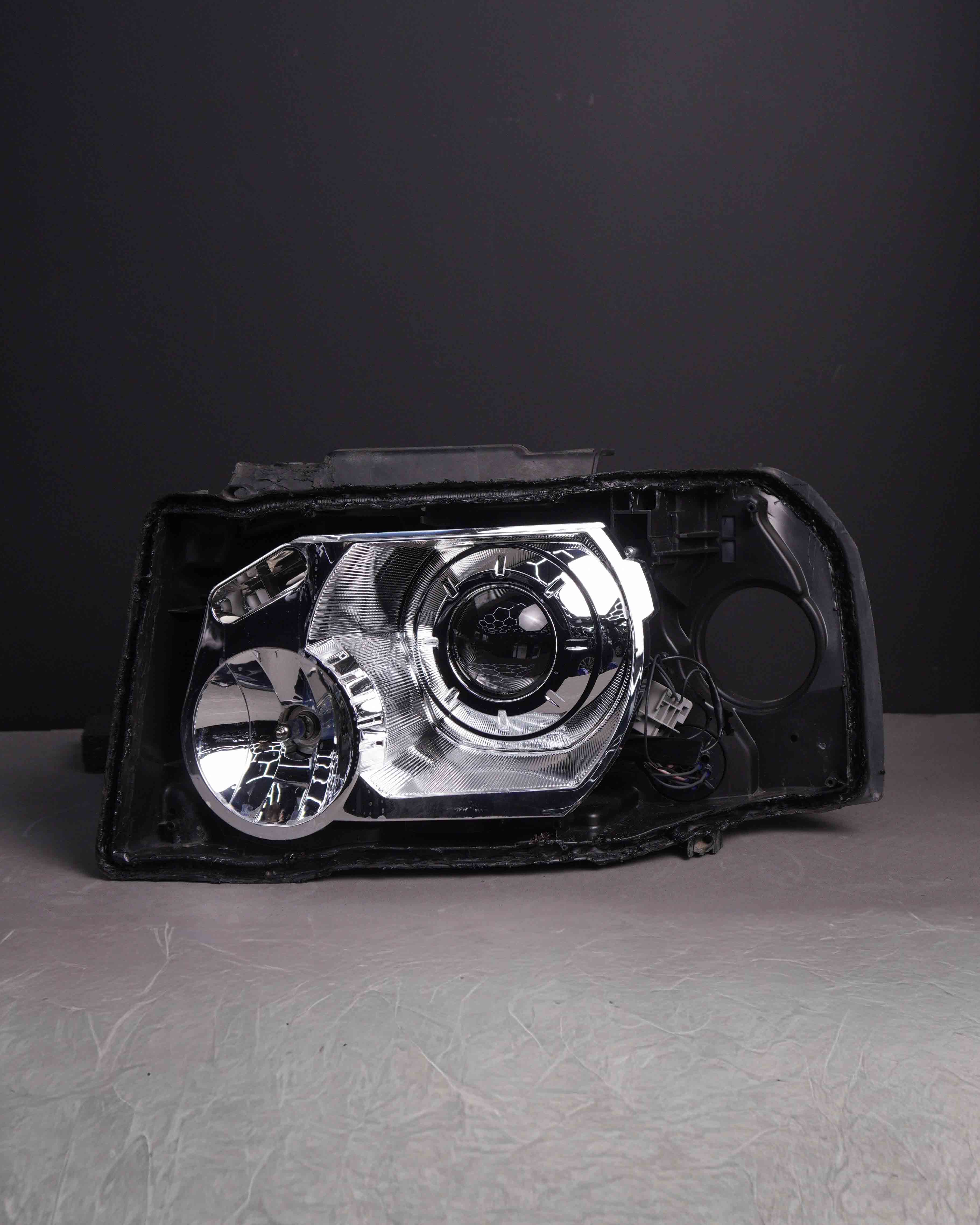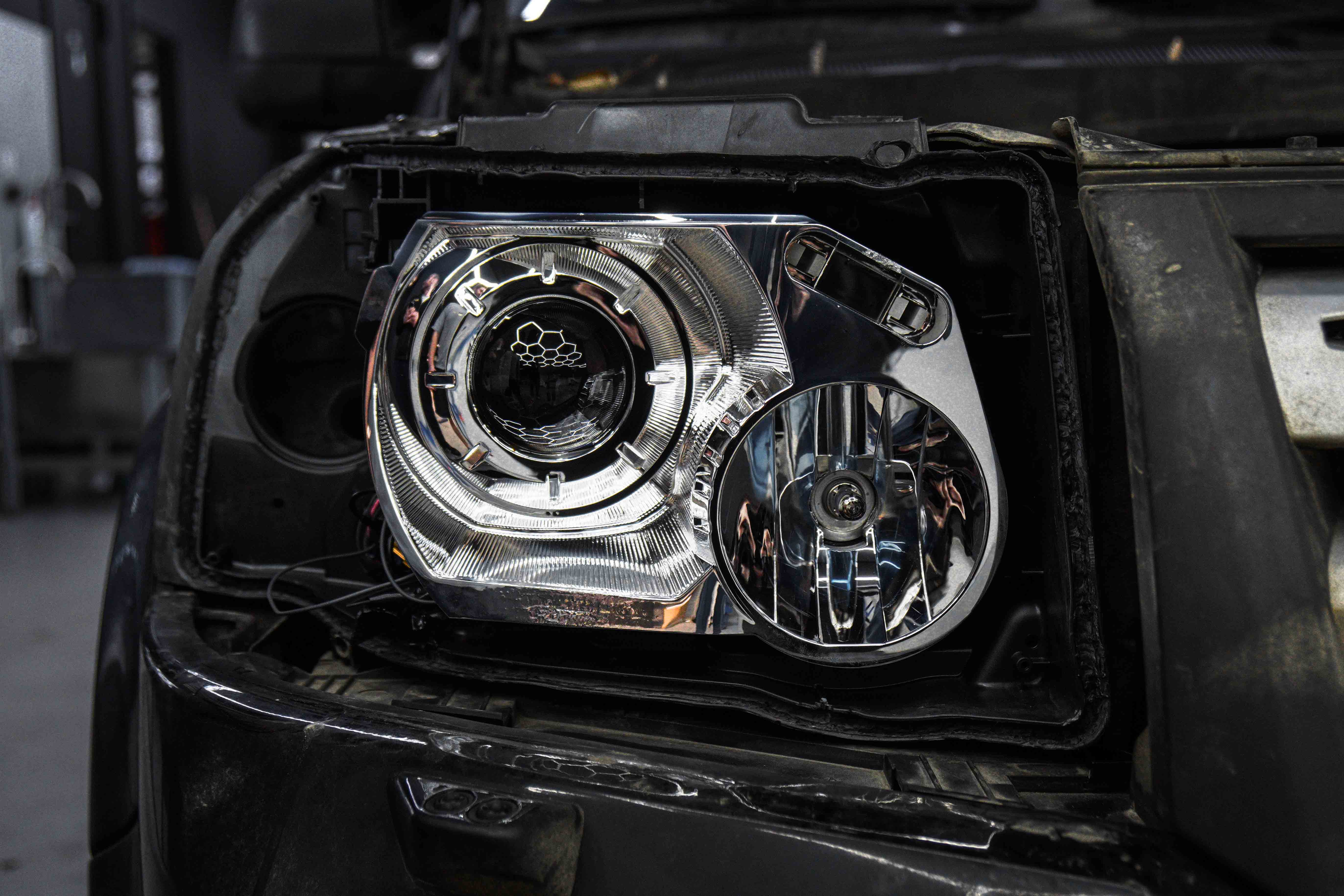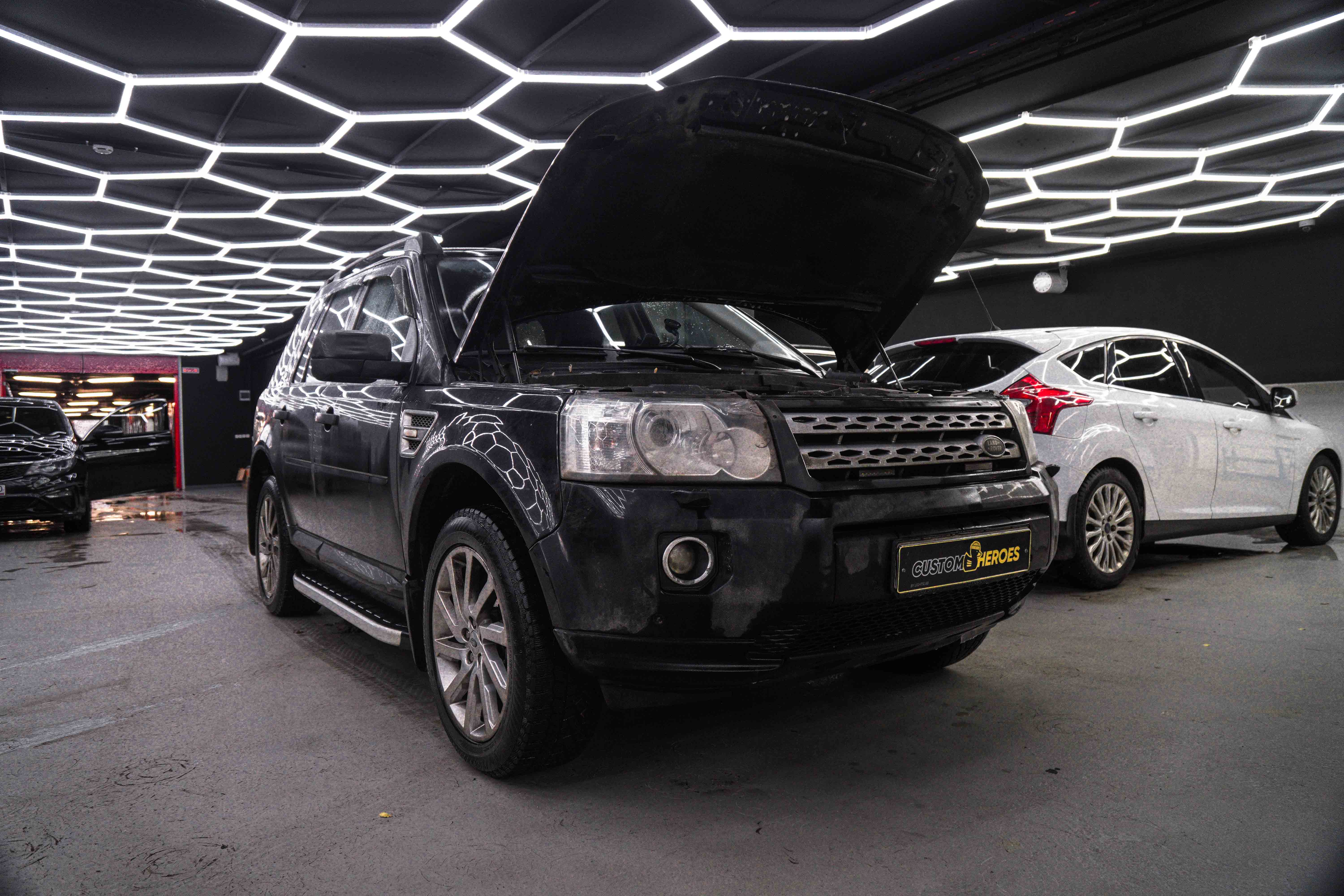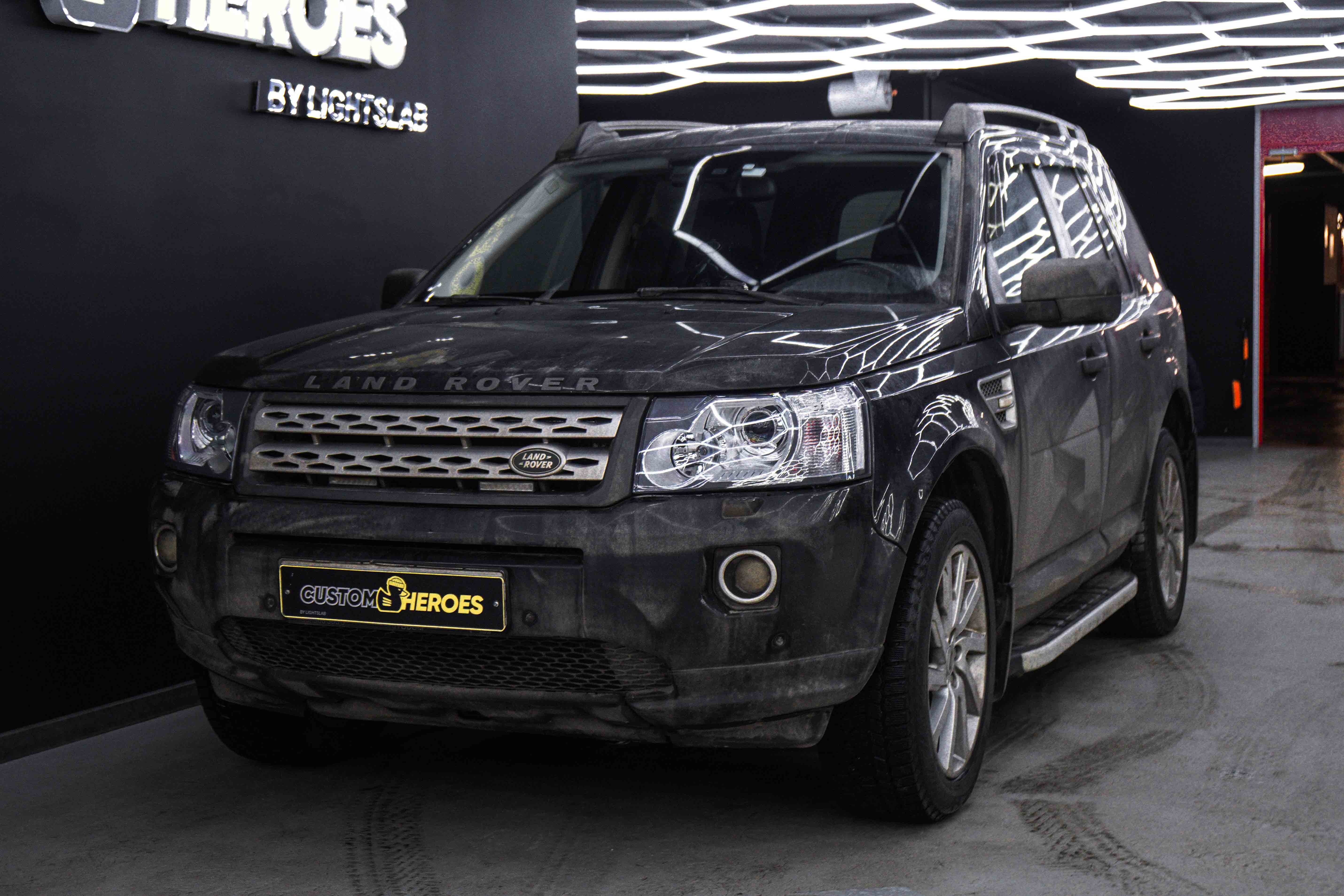 Land Rover Freelander 2 заехал в студию Custom Heroes с серьёзной проблемой по автосвету. Одна из линз полностью вышла из строя, вторая уже не обеспечивала нормального освещения дороги. Дополнительно ситуацию усугубляли уставшие стекла фар, которые заметно портили внешний вид передней части автомобиля.
