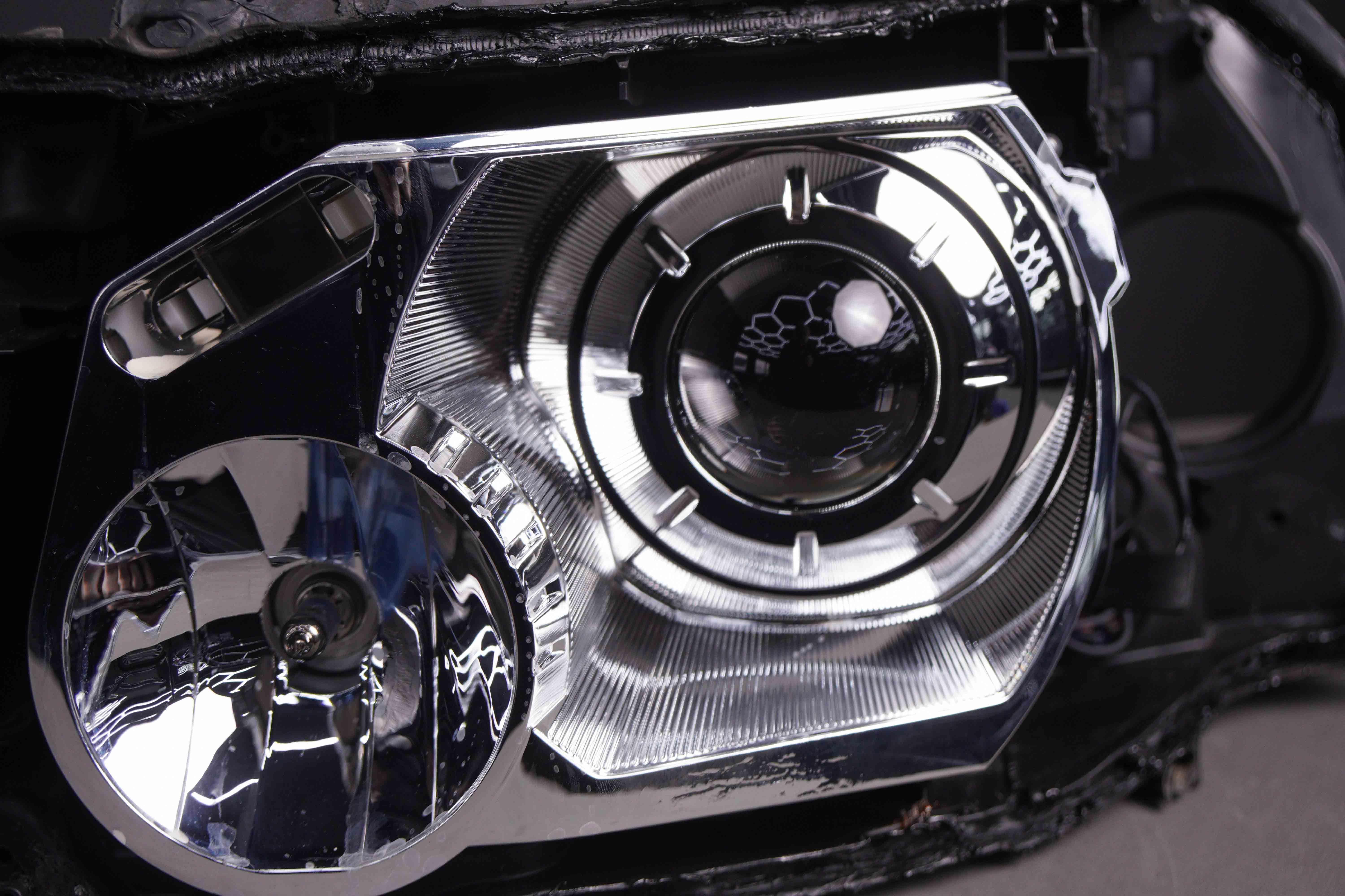 После первичного осмотра стало понятно, что проблема носит комплексный характер. Одна линза не функционировала вовсе, вторая имела критическое падение светового потока из-за износа оптического элемента.