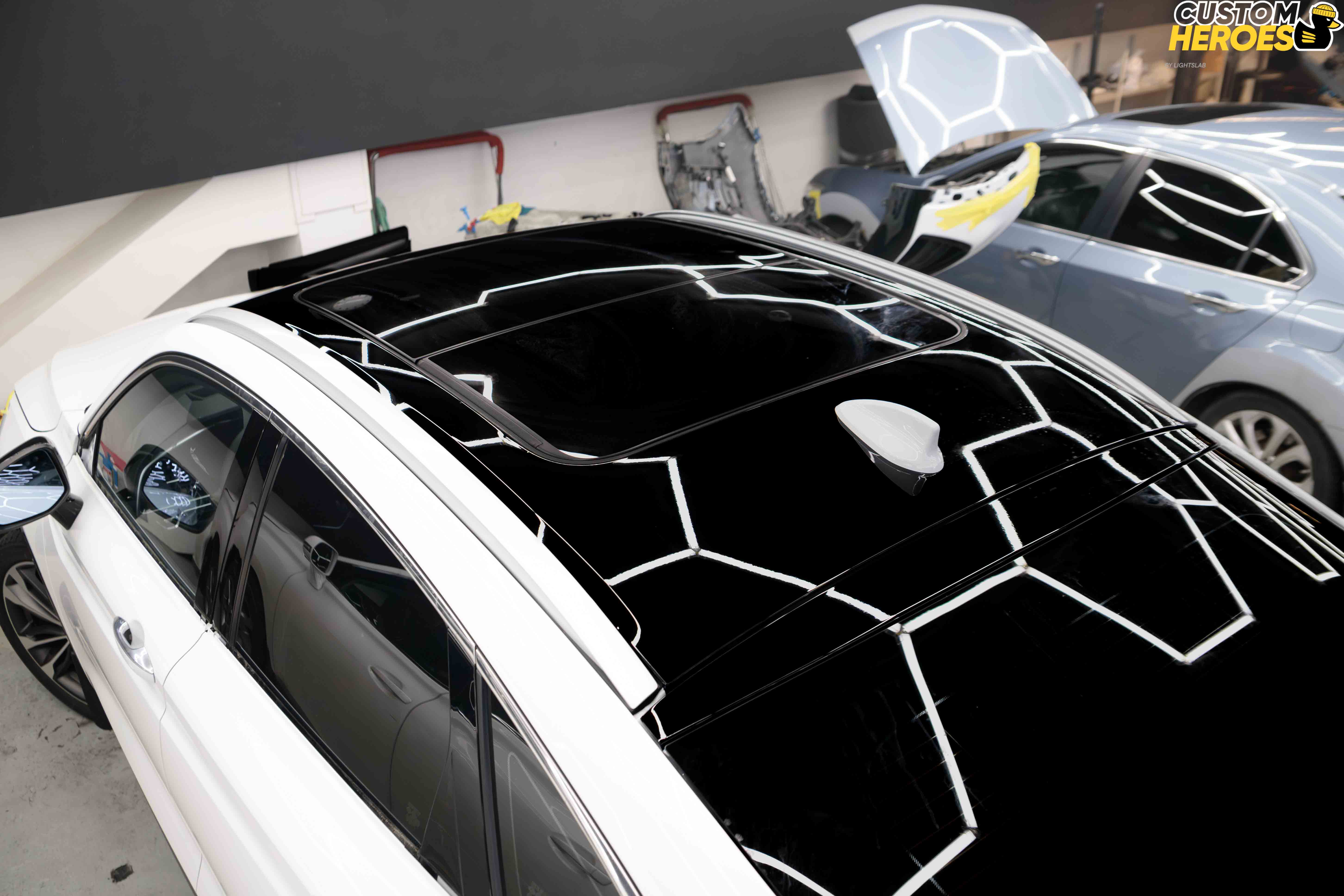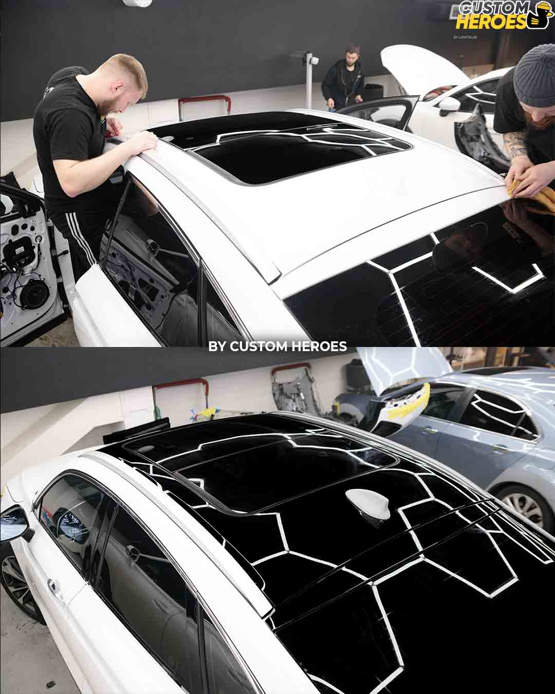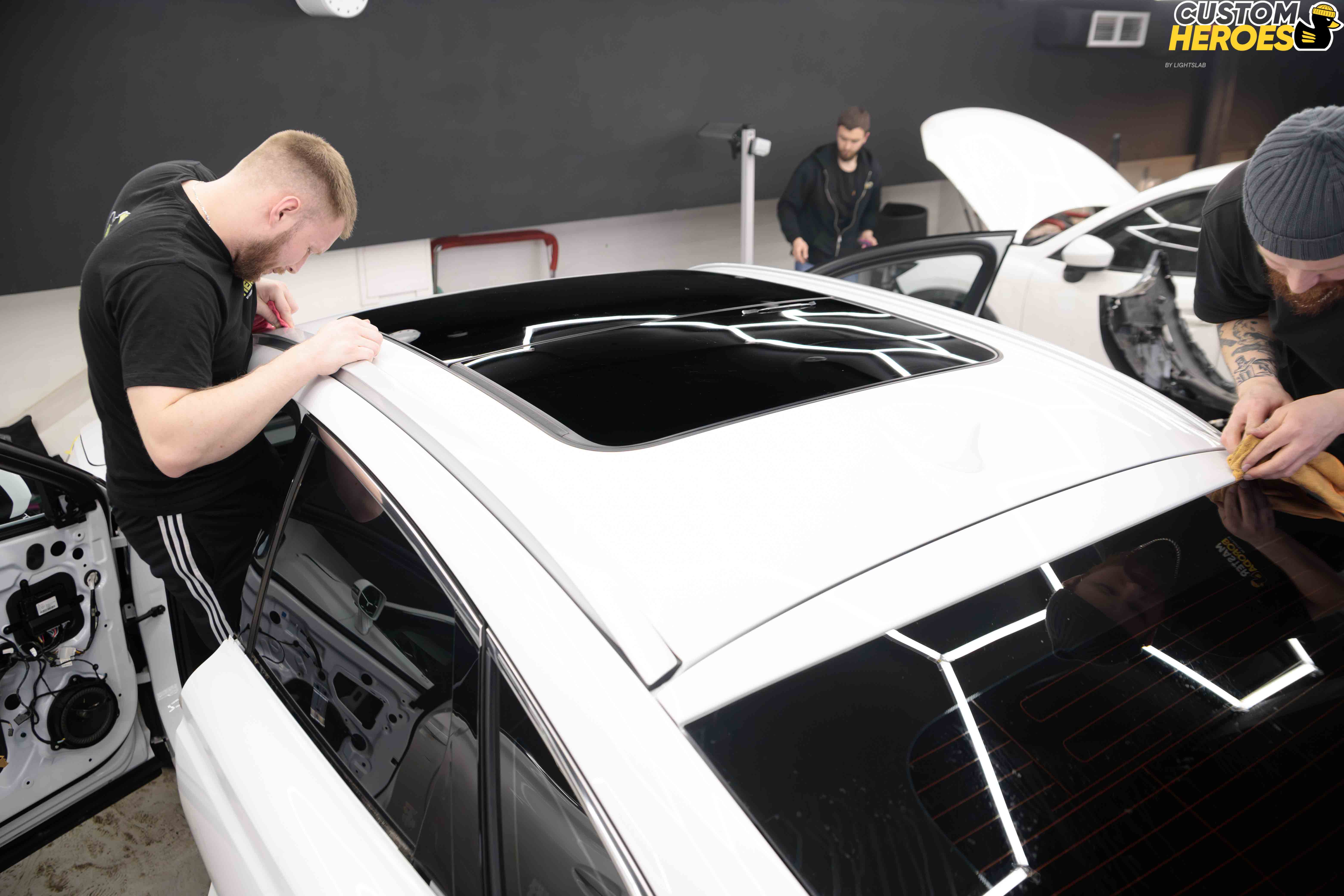 - Разбор элементов для аккуратного выполнения антихрома (крыша, зеркала, дверные ручки).