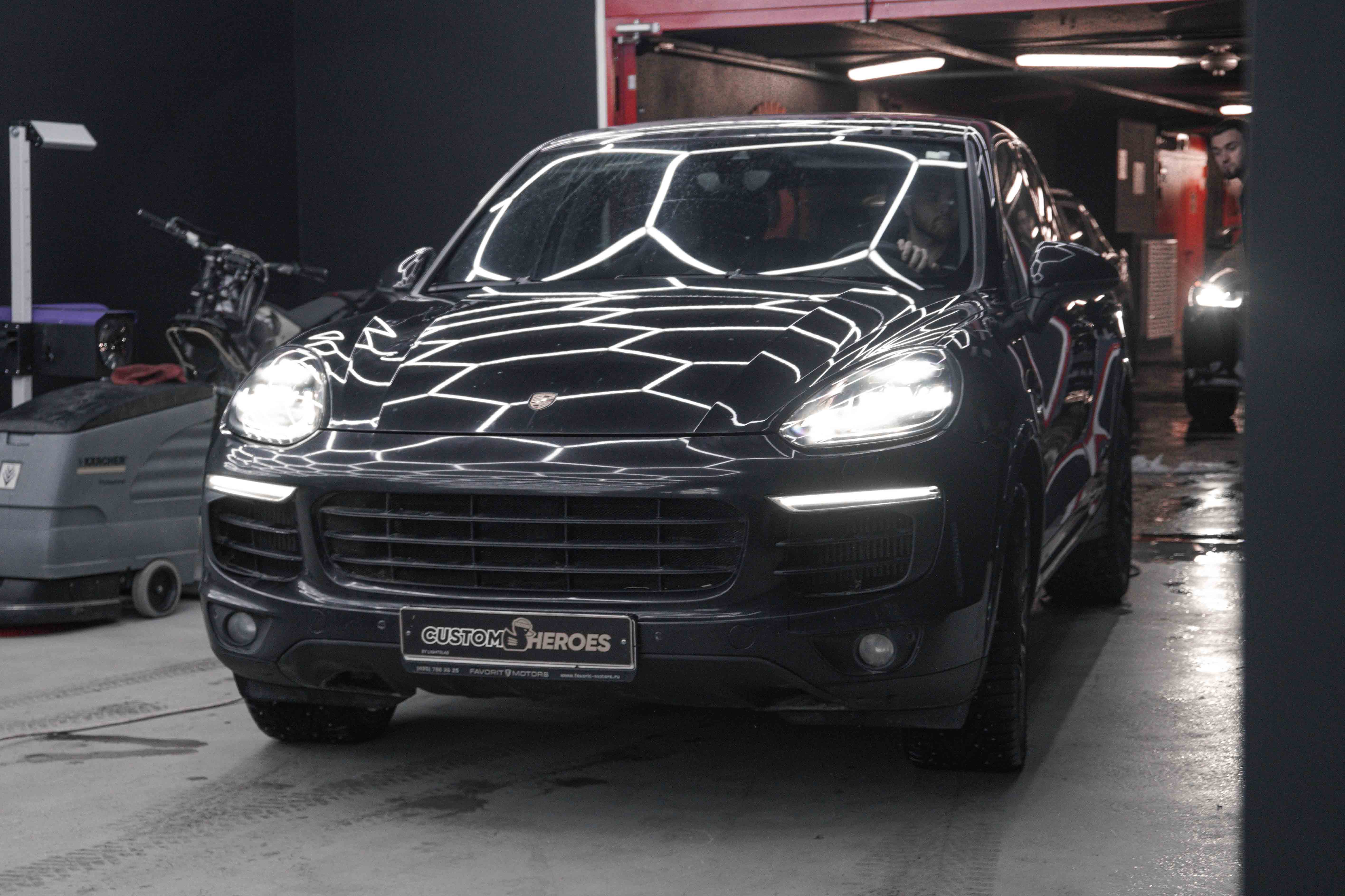 В Custom Heroes заехал Porsche Cayenne 958 рестайлинг 2 с проблемой, знакомой многим владельцам — запотевание правой фары. После мойки, дождя или перепадов температуры внутри оптики появлялась влага, из-за чего фара теряла аккуратный внешний вид и качество света.