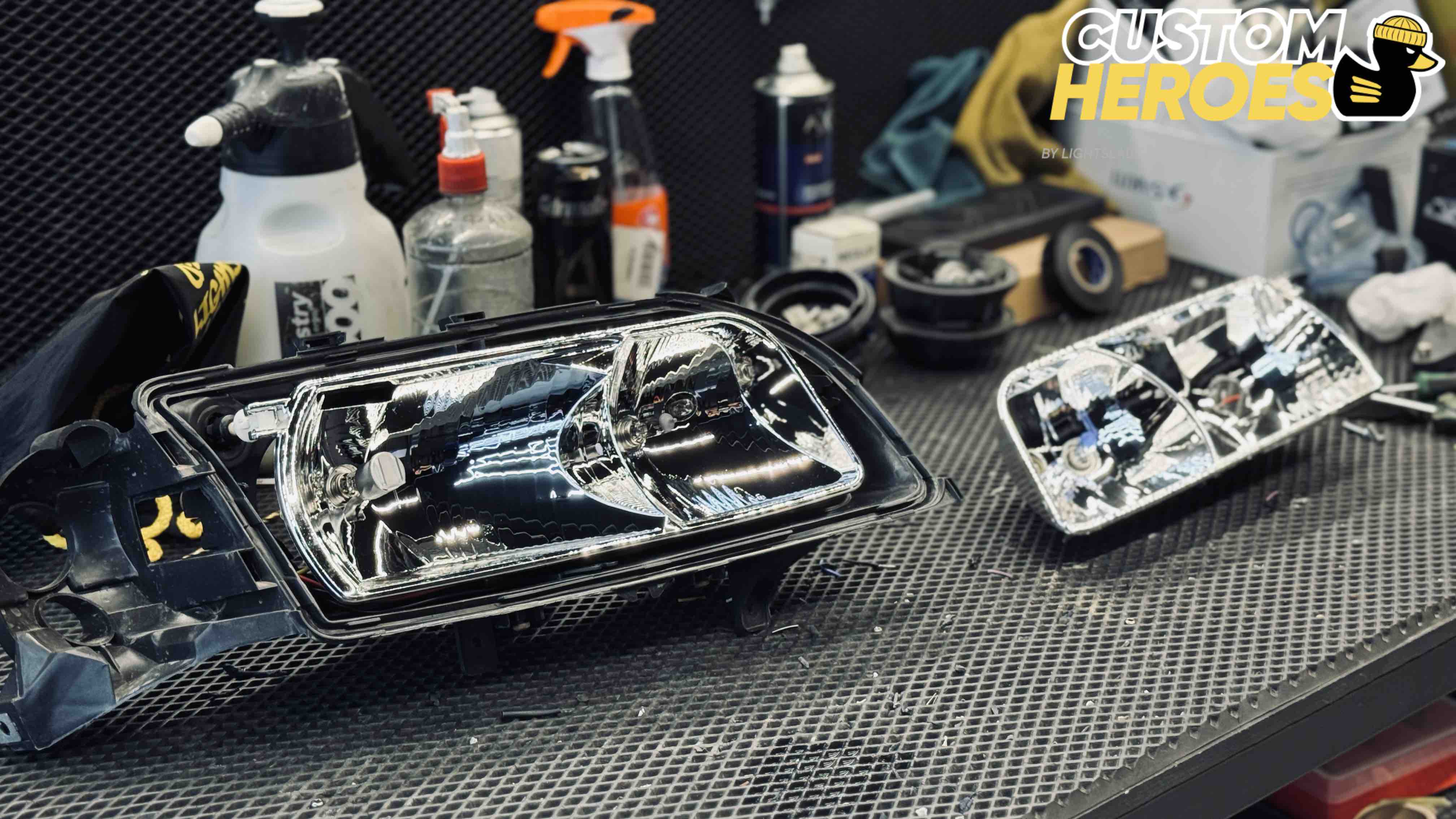 Мастера Custom Heroes провели полный цикл восстановления фар с сохранением оригинальной геометрии и заводского внешнего вида. Процесс включал: