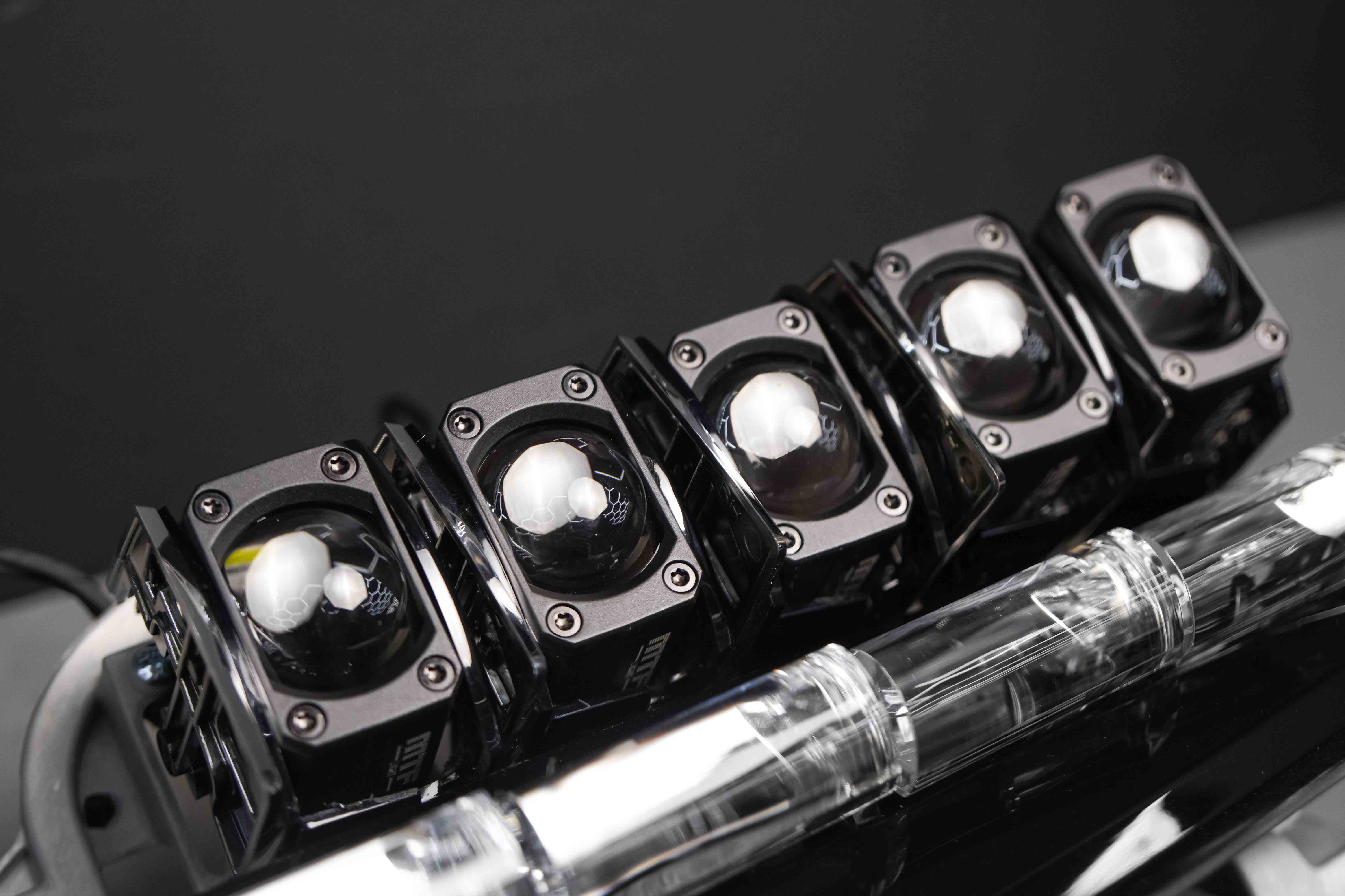 Интересный момент: в каждой фаре Escalade установлено по пять небольших линз, но даже при таком количестве штатный свет оказался недостаточно эффективным. Не хватало яркости, плотности светового пучка и уверенной дальности для комфортной ночной езды.