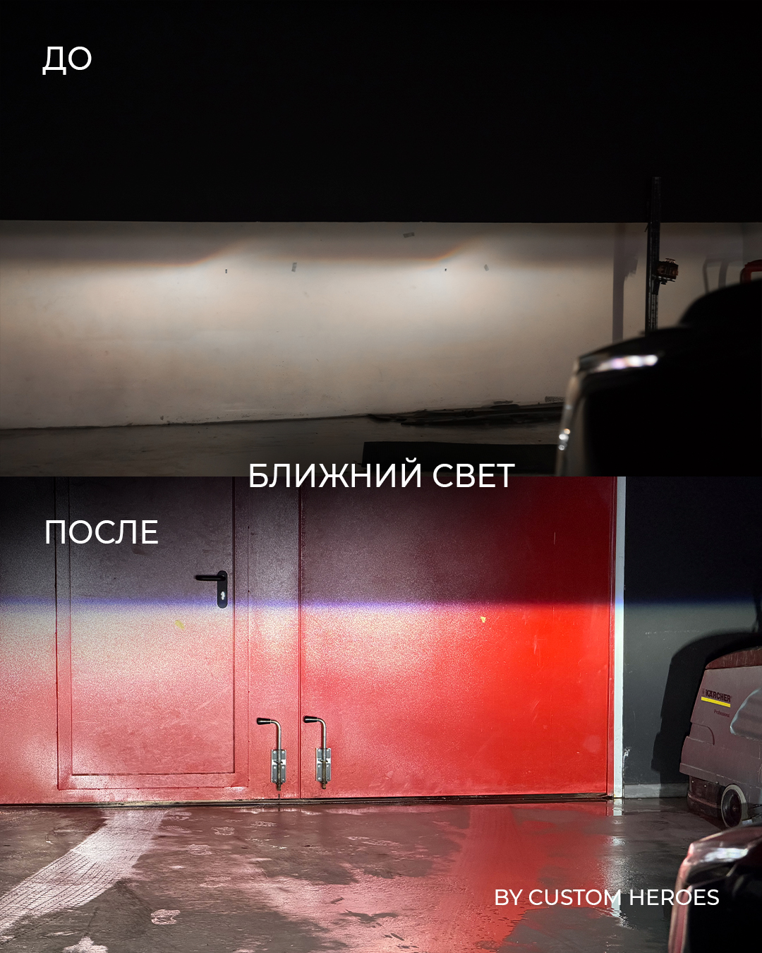 После замены линз свет у Cadillac Escalade стал заметно ярче, плотнее и ровнее. Появилась правильная светотеневая граница и уверенная дальность, благодаря которой дорога читается заранее и без напряжения.
