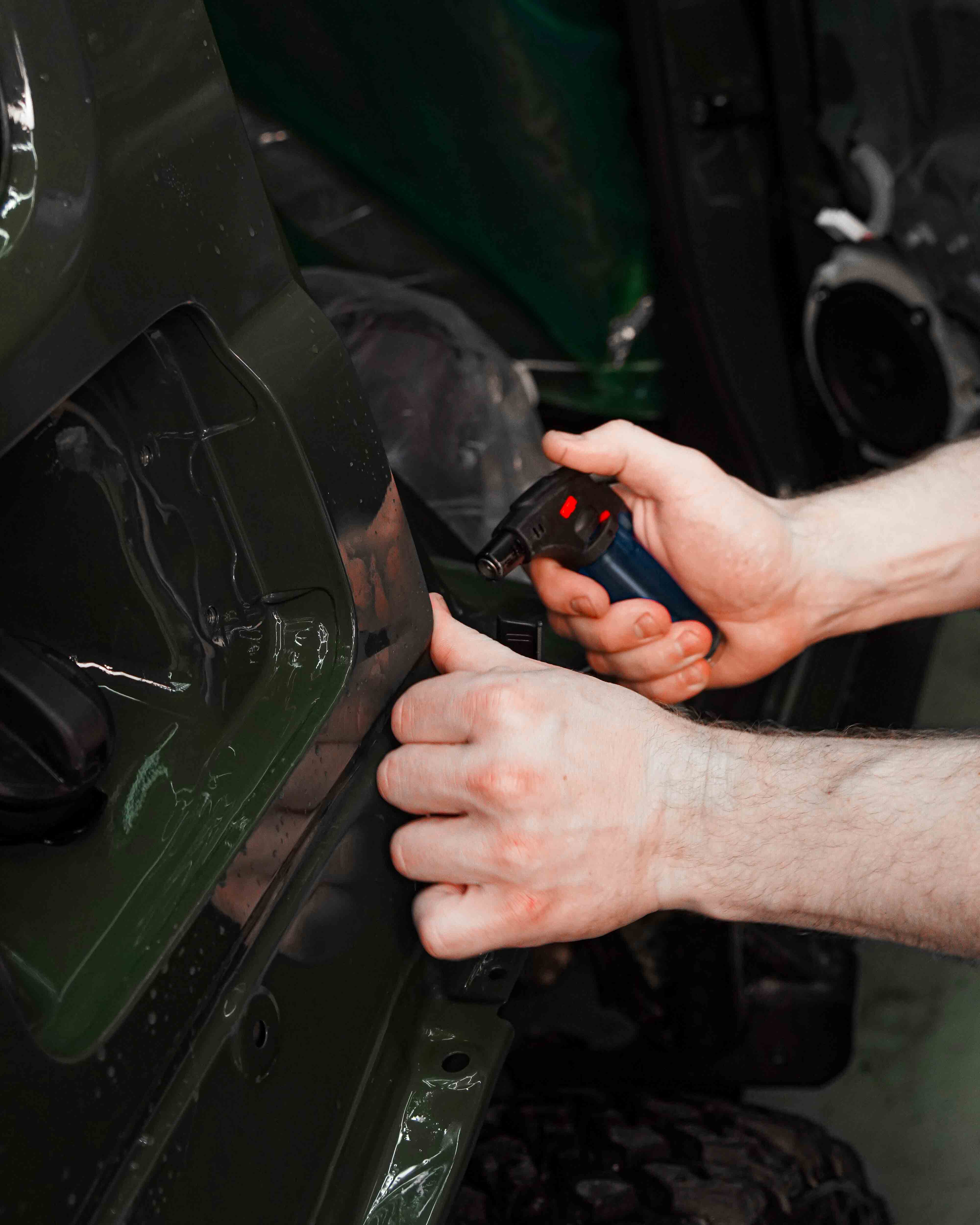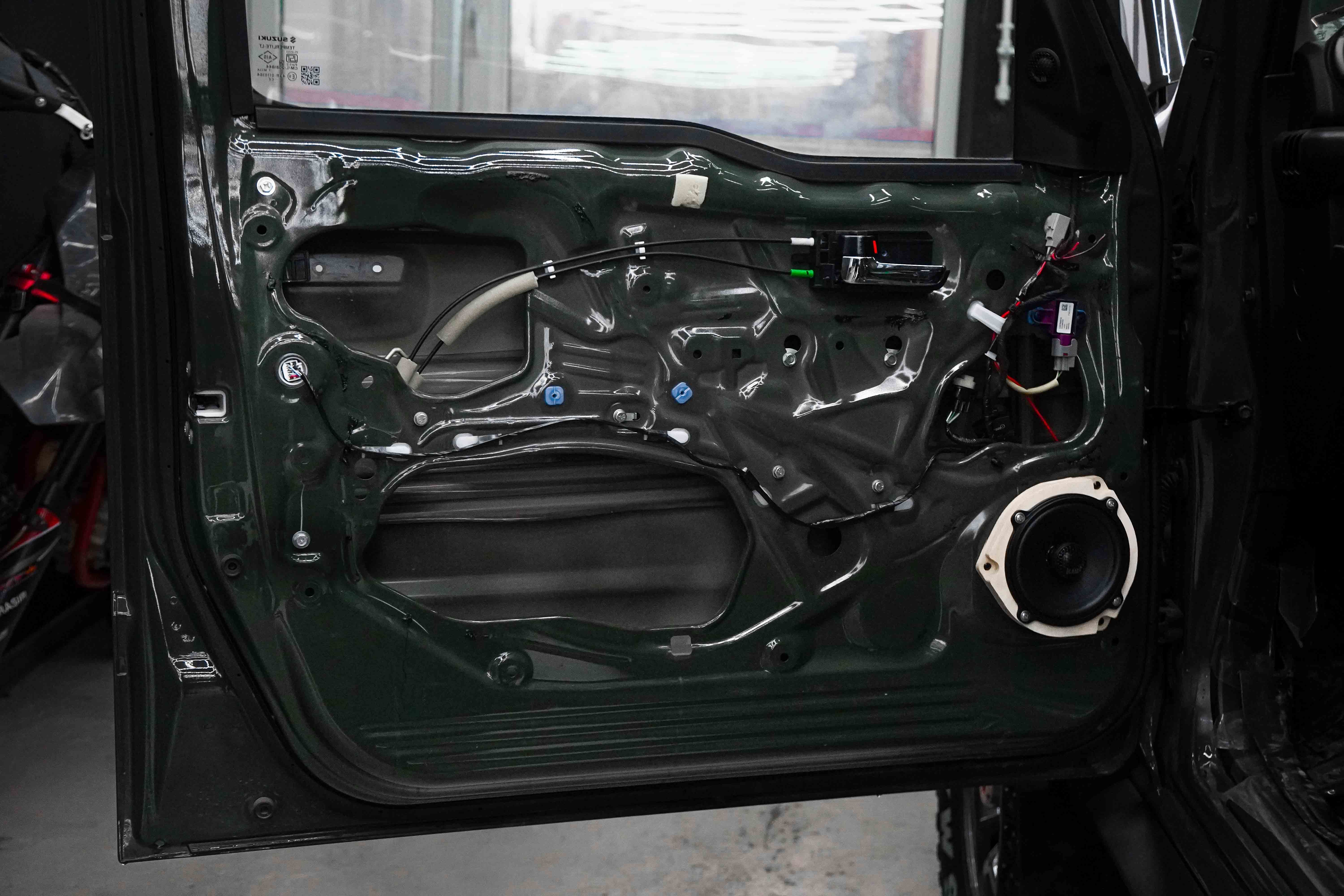 Чтобы добавить Jimny комфорта, мы выполнили шумо- и виброизоляцию дверей и арок.