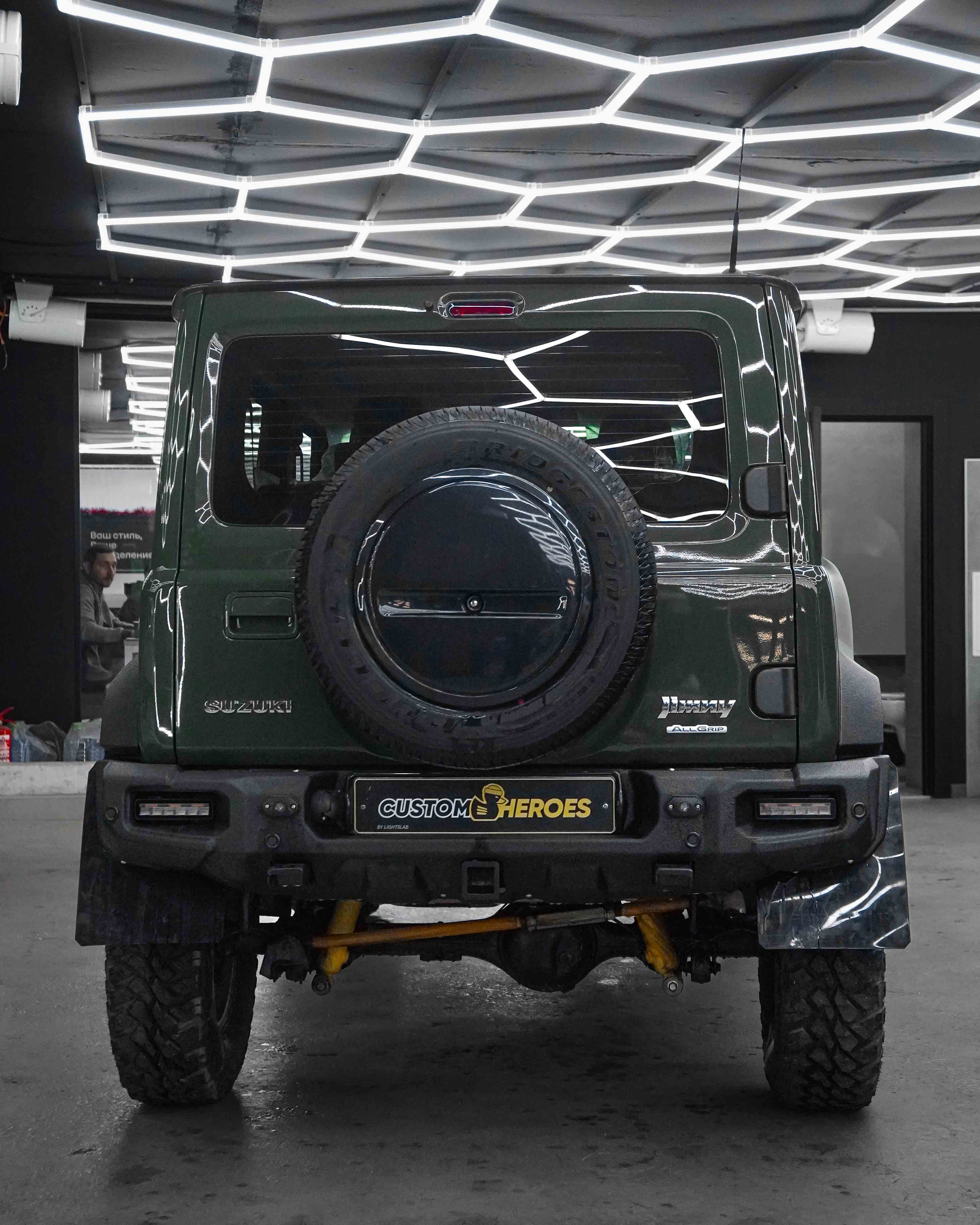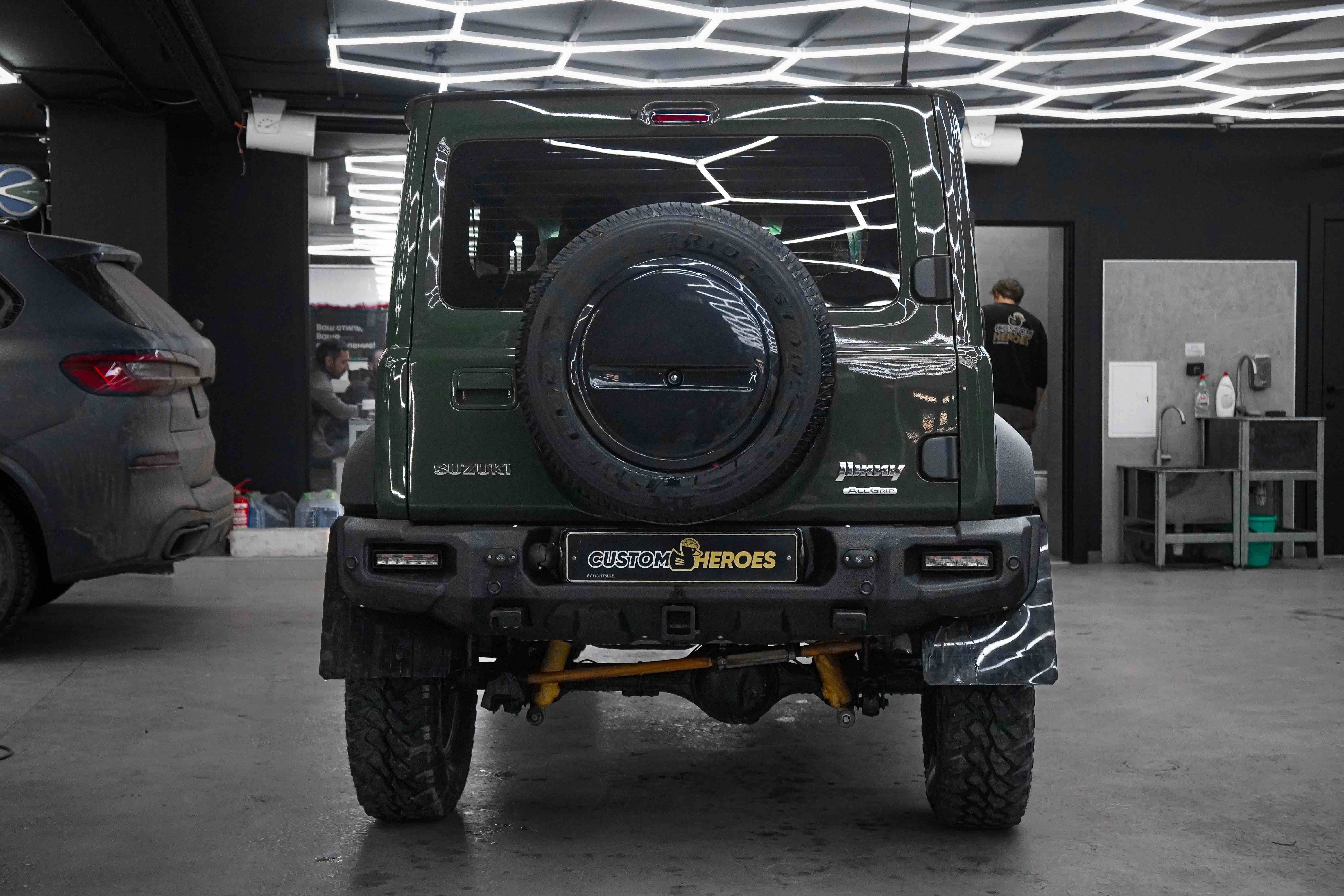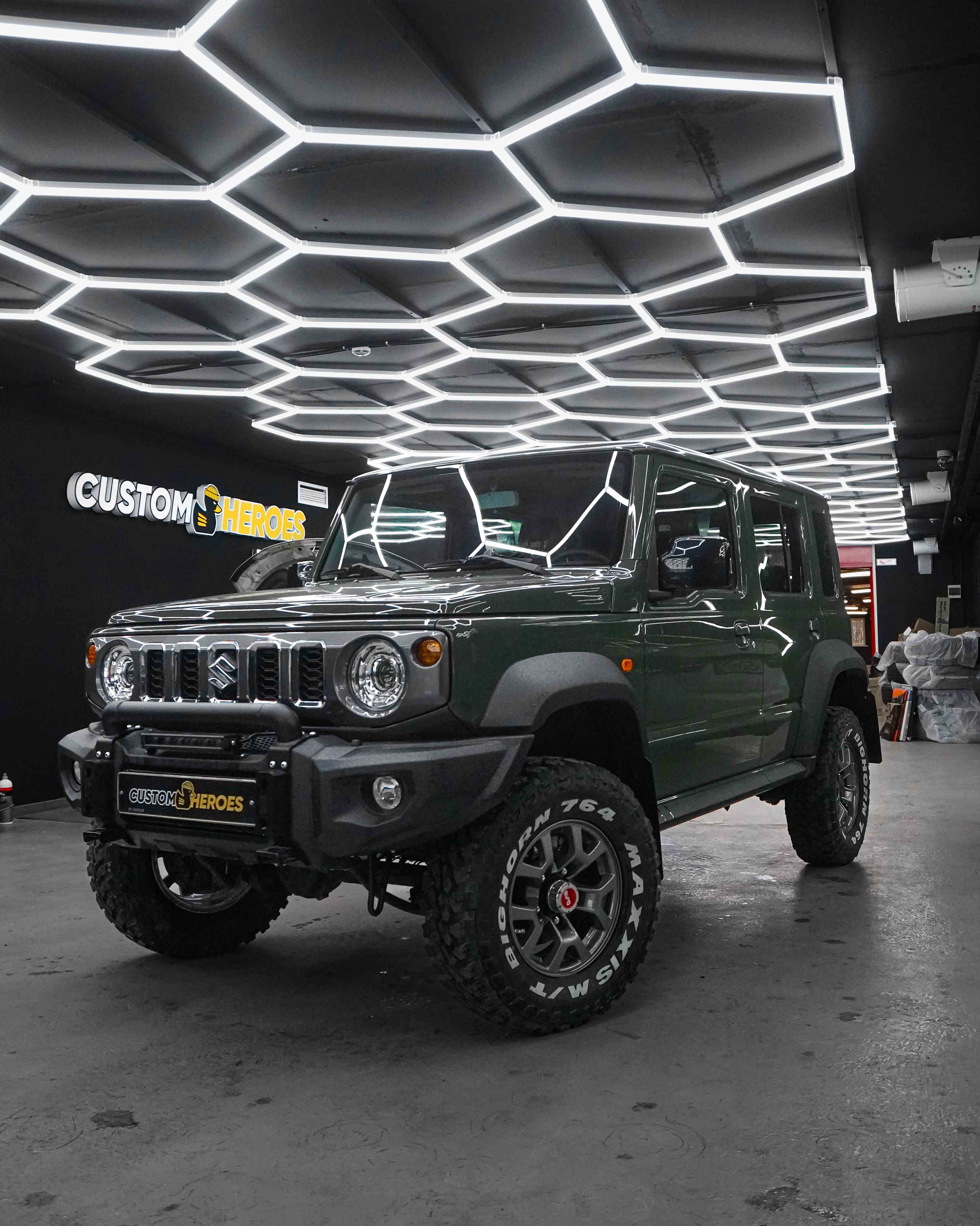 В стенах студии Custom Heroes появился довольно редкий автомобиль на наших дорогах, но при этом культовый среди любителей офф-роуда и трофи-рейдов — Suzuki Jimny. И редкость его не только в характере, а в исполнении: перед нами пятидверный Jimny в эксклюзивном цвете Military, пригнанный из ОАЭ нашим постоянным клиентом.