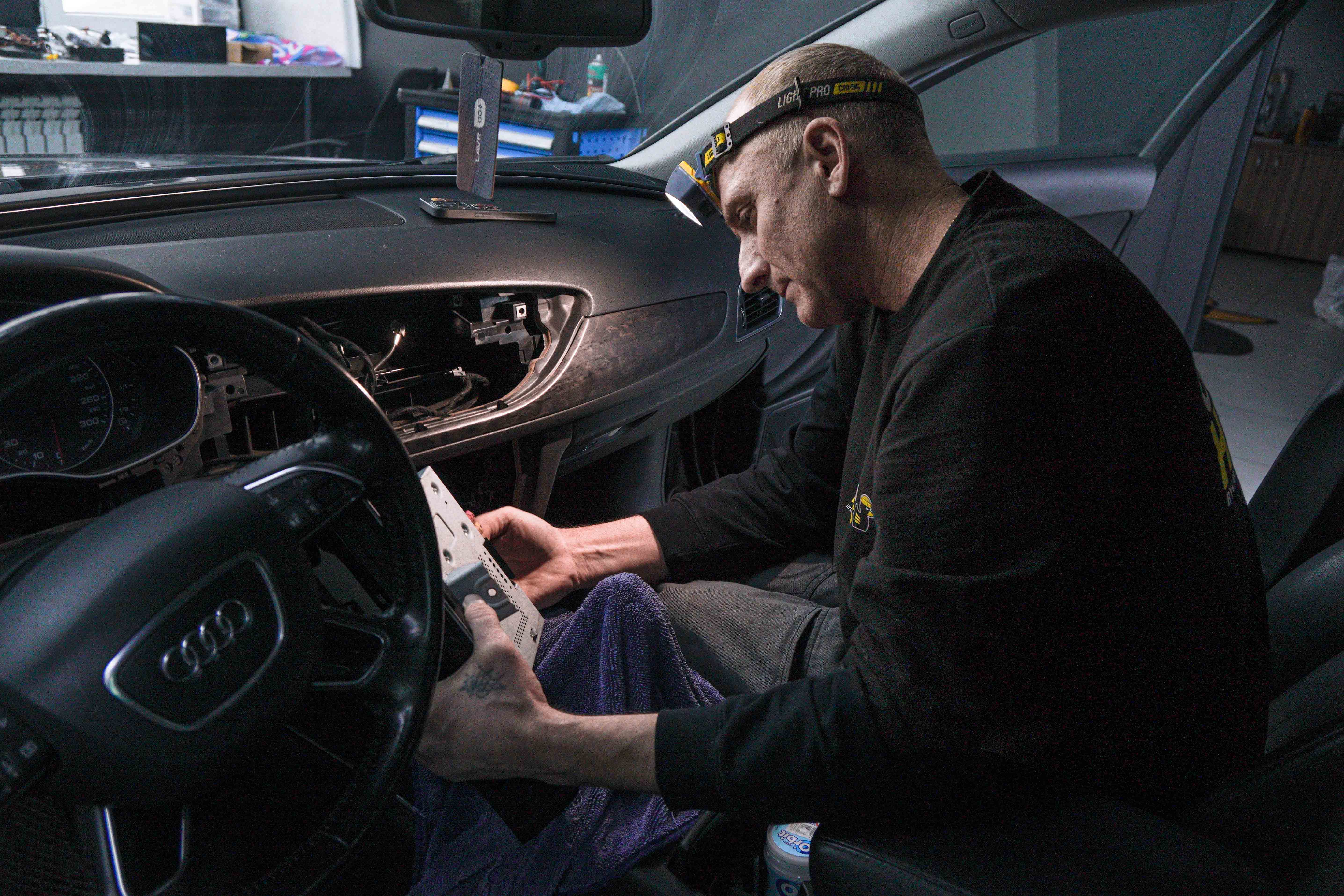 - установка магнитолы Audi A6