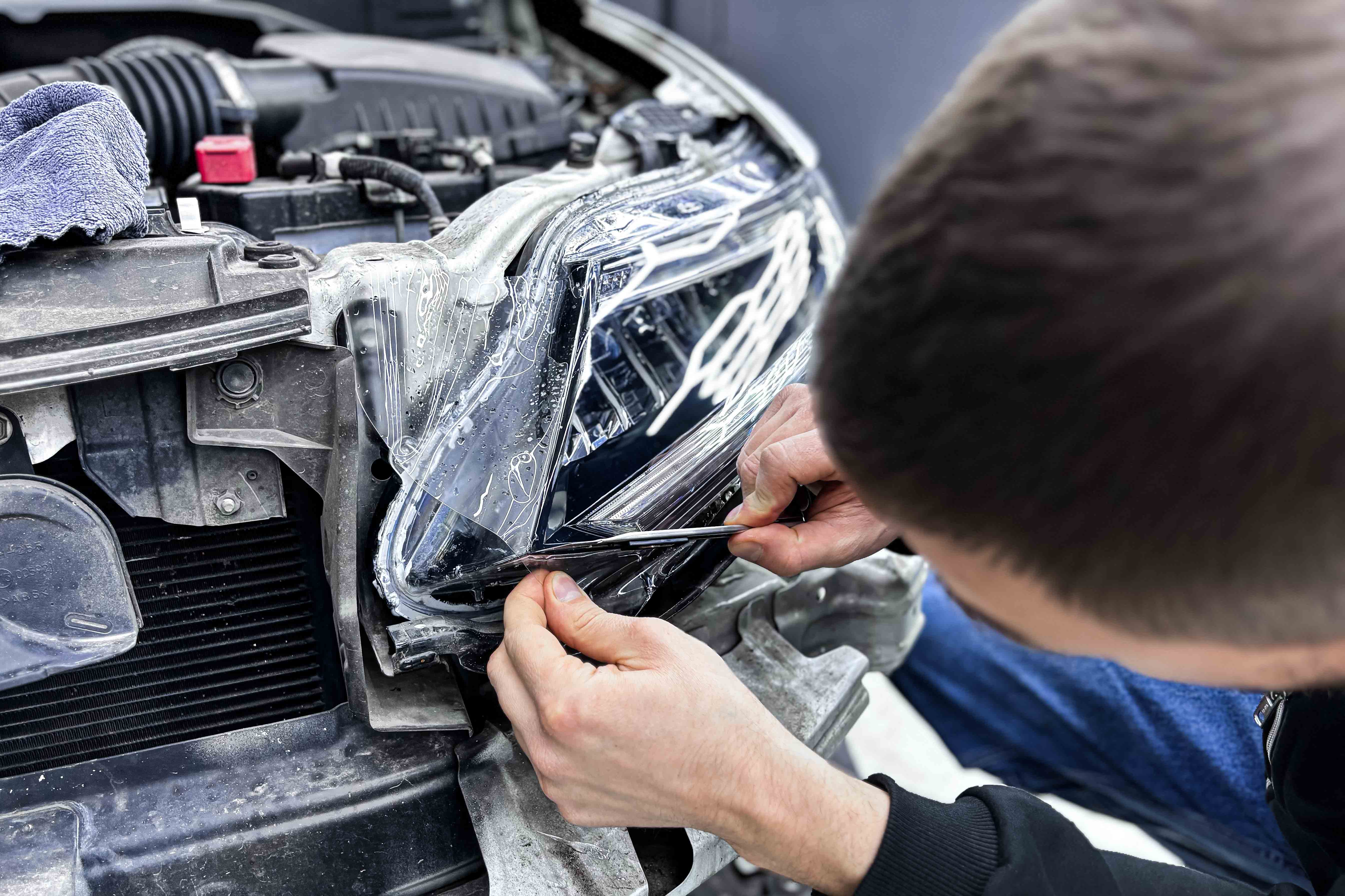 - Тщательная мойка и обезжиривание поверхности фар.
