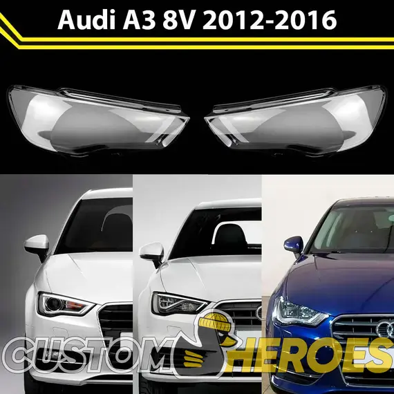 Высококачественные стекла фар из оптического поликарбоната с защитным УФ-лаком идеально подходят для замены оригинальных стекол фар на Audi A3 2012-2016 8V