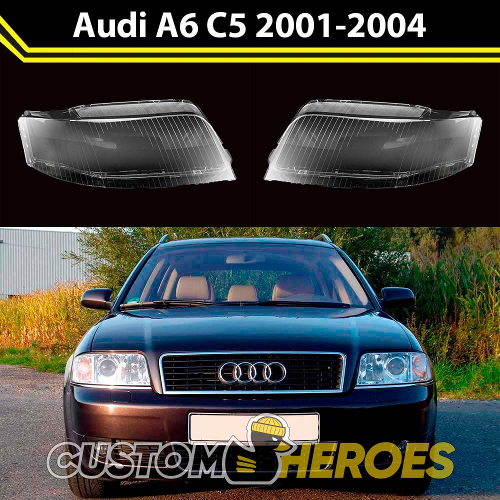 Высококачественные стекла фар из оптического поликарбоната с защитным УФ-лаком идеально подходят для замены оригинальных стекол фар на Audi A6 2001-2004 4B/C5 [рестайлинг]