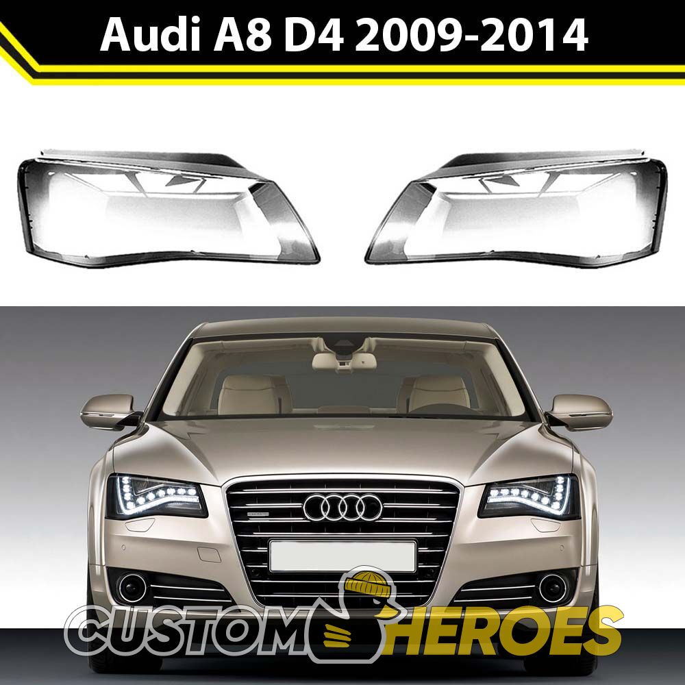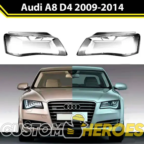 Высококачественные стекла фар из оптического поликарбоната с защитным УФ-лаком идеально подходят для замены оригинальных стекол фар на Audi A8 2009-2014 D4/4H