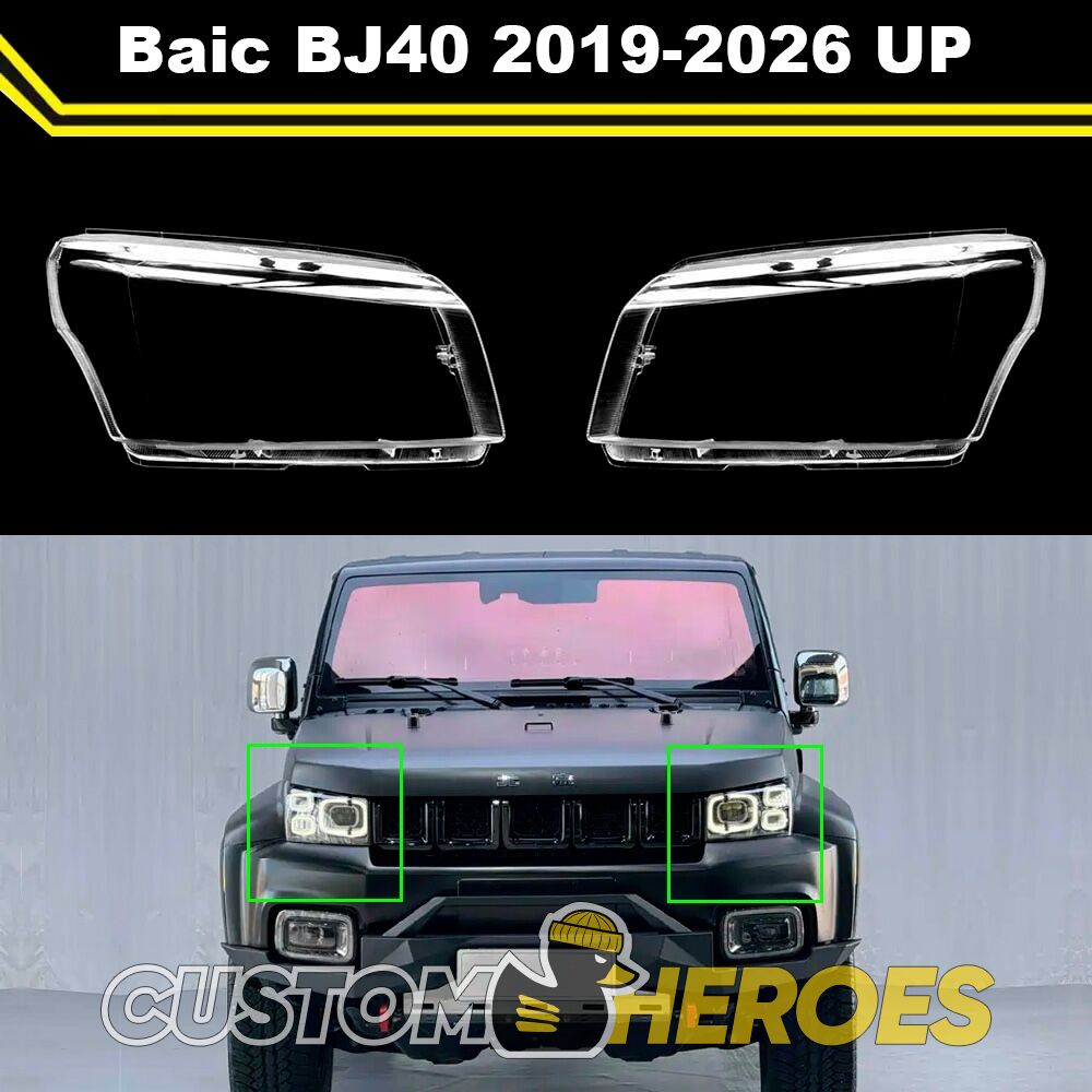 Высококачественные стекла фар из оптического поликарбоната с защитным УФ-лаком идеально подходят для замены оригинальных стекол фар на Baic BJ40 2019-2024 1 поколение [рестайлинг]