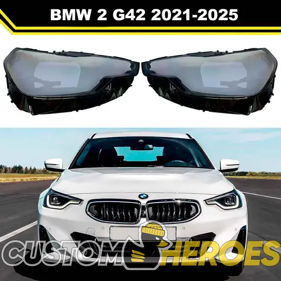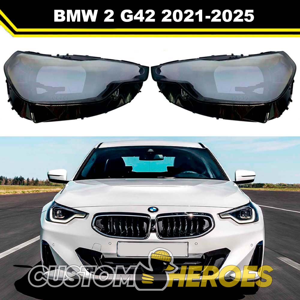 Высококачественные стекла фар из оптического поликарбоната с защитным УФ-лаком идеально подходят для замены оригинальных стекол фар на BMW 2 series 2021-2025 G42