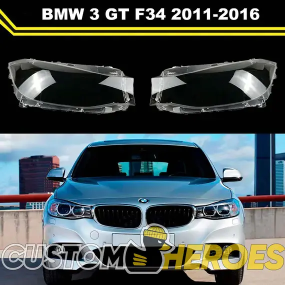 Высококачественные стекла фар из оптического поликарбоната с защитным УФ-лаком идеально подходят для замены оригинальных стекол фар на BMW 3 series GT 2011-2016 F34