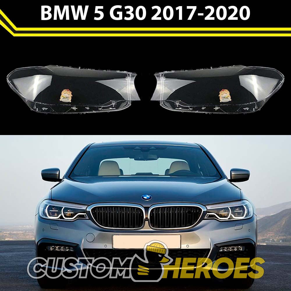 Высококачественные стекла фар из оптического поликарбоната с защитным УФ-лаком идеально подходят для замены оригинальных стекол фар на BMW 5 series 2017-2020 G30