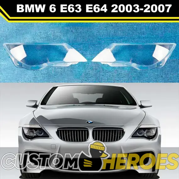 Высококачественные стекла фар из оптического поликарбоната с защитным УФ-лаком идеально подходят для замены оригинальных стекол фар на BMW 6 series 2003-2007 E63/E64
