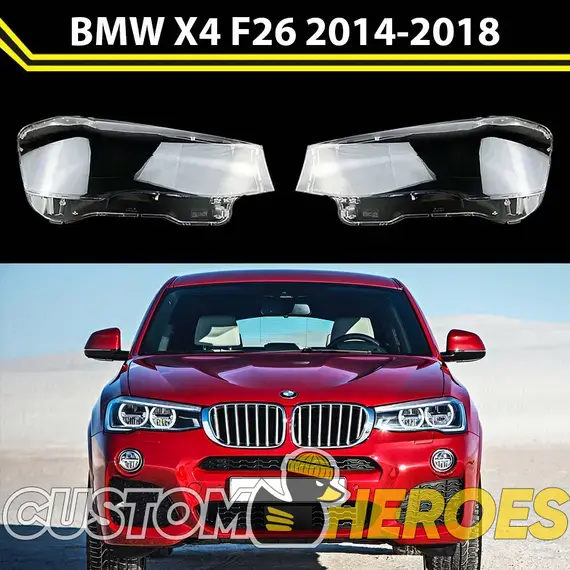 Высококачественные стекла фар из оптического поликарбоната с защитным УФ-лаком идеально подходят для замены оригинальных стекол фар на BMW X4 2014-2018 F26