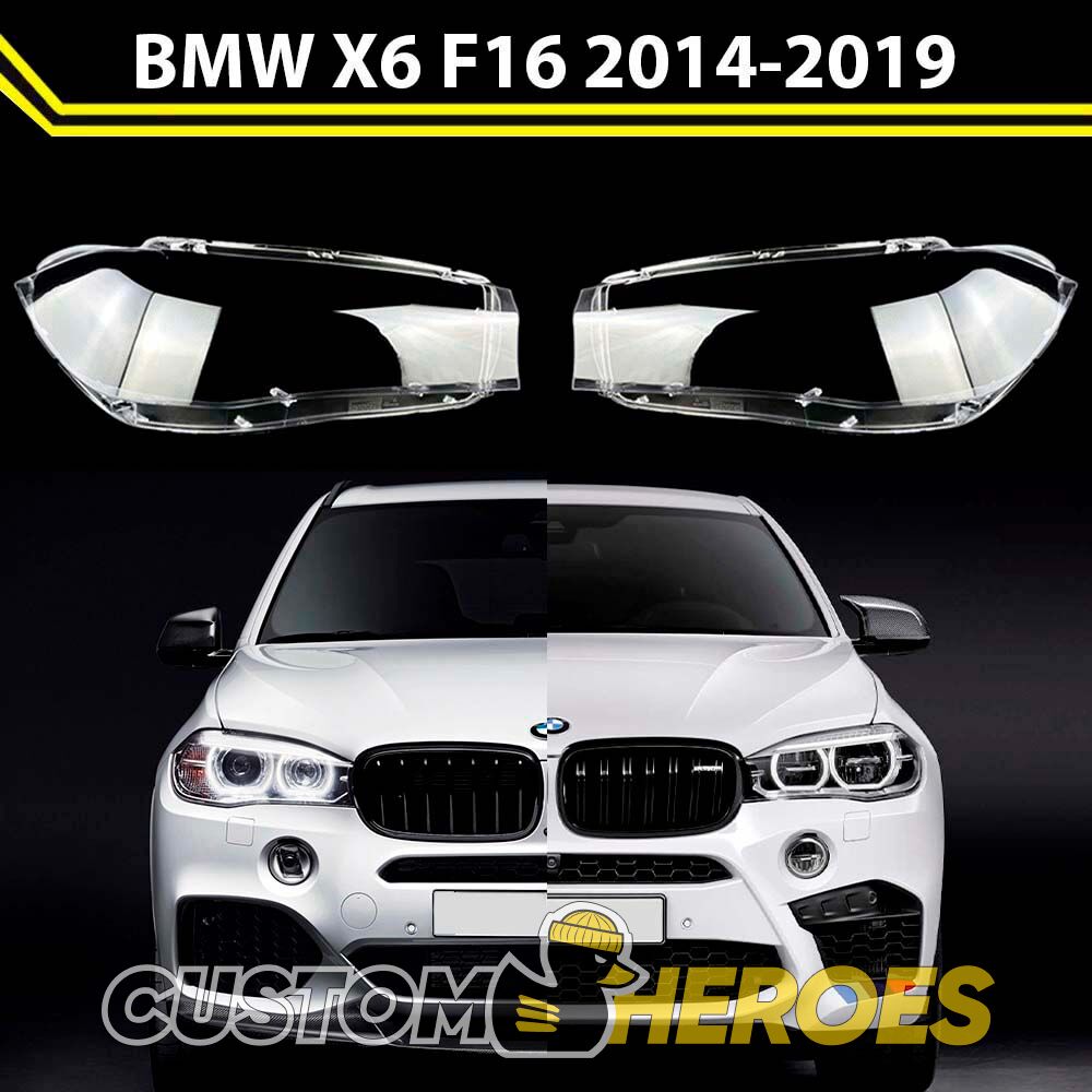 Высококачественные стекла фар из оптического поликарбоната с защитным УФ-лаком идеально подходят для замены оригинальных стекол фар на BMW X6 2014-2019 F16