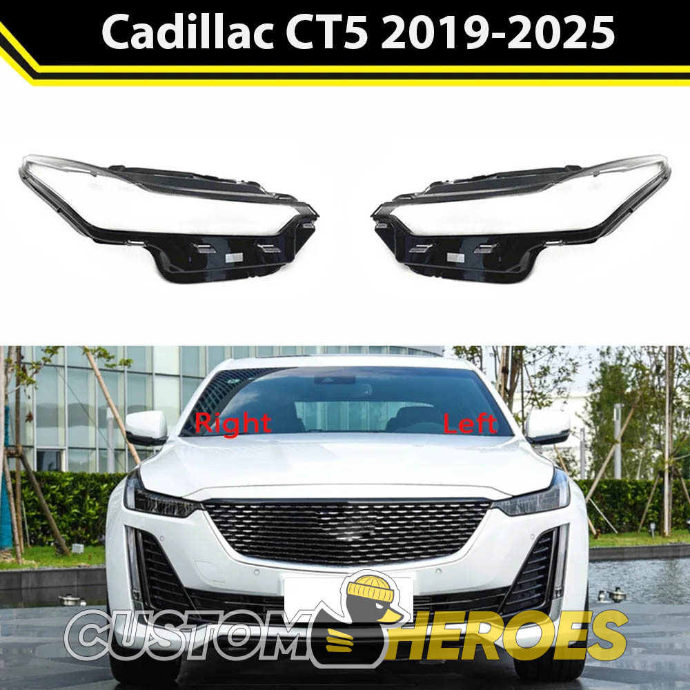 Высококачественные стекла фар из оптического поликарбоната с защитным УФ-лаком идеально подходят для замены оригинальных стекол фар на Cadillac CT5 2019-2024 1 поколение