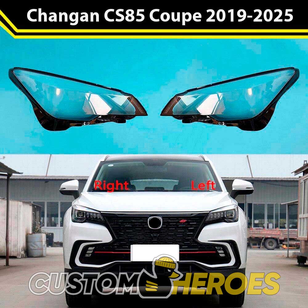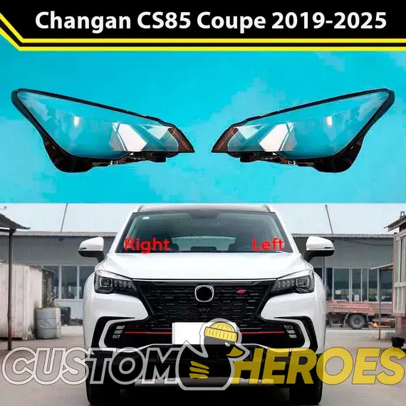 Высококачественные стекла фар из оптического поликарбоната с защитным УФ-лаком идеально подходят для замены оригинальных стекол фар на Changan CS85 Coupe 2019-2024