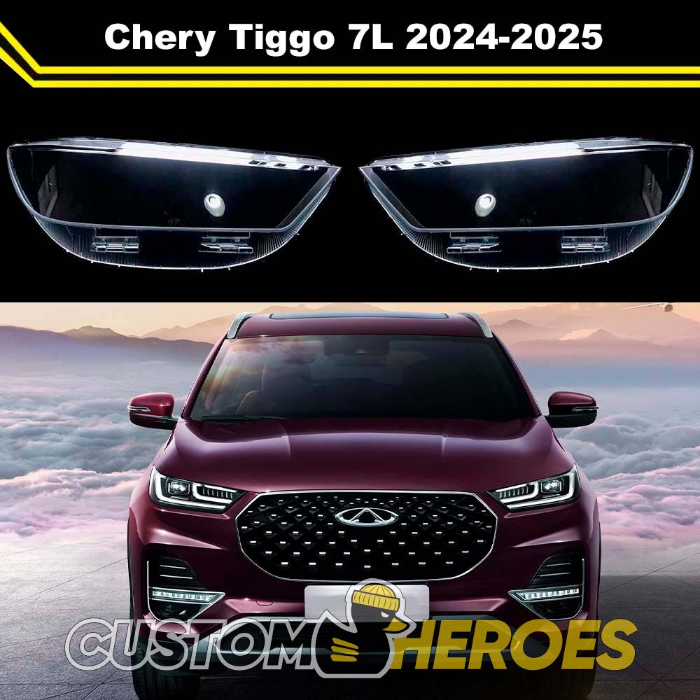 Высококачественные стекла фар из оптического поликарбоната с защитным УФ-лаком идеально подходят для замены оригинальных стекол фар на Chery Tiggo 7L 2024-2025