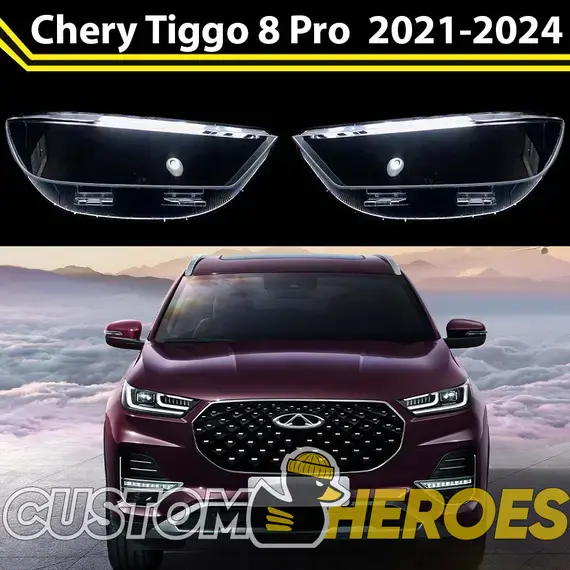 Высококачественные стекла фар из оптического поликарбоната с защитным УФ-лаком идеально подходят для замены оригинальных стекол фар на Chery Tiggo 8 Pro 2021-2024 1 поколение