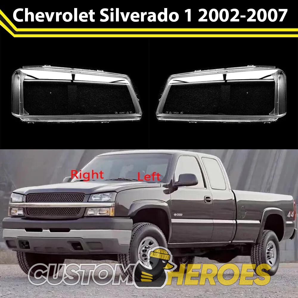 Высококачественные стекла фар из оптического поликарбоната с защитным УФ-лаком идеально подходят для замены оригинальных стекол фар на Chevrolet Silverado 2002-2007 GMT800 [рестайлинг]