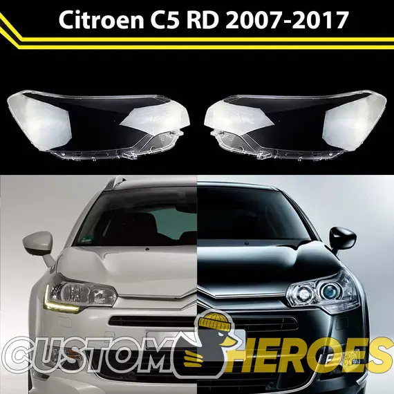 Высококачественные стекла фар из оптического поликарбоната с защитным УФ-лаком идеально подходят для замены оригинальных стекол фар на Citroen C5 2007-2017 2 поколение