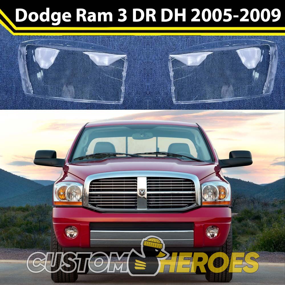 Высококачественные стекла фар из оптического поликарбоната с защитным УФ-лаком идеально подходят для замены оригинальных стекол фар на Dodge Ram 2005-2009 3 поколение [рестайлинг]