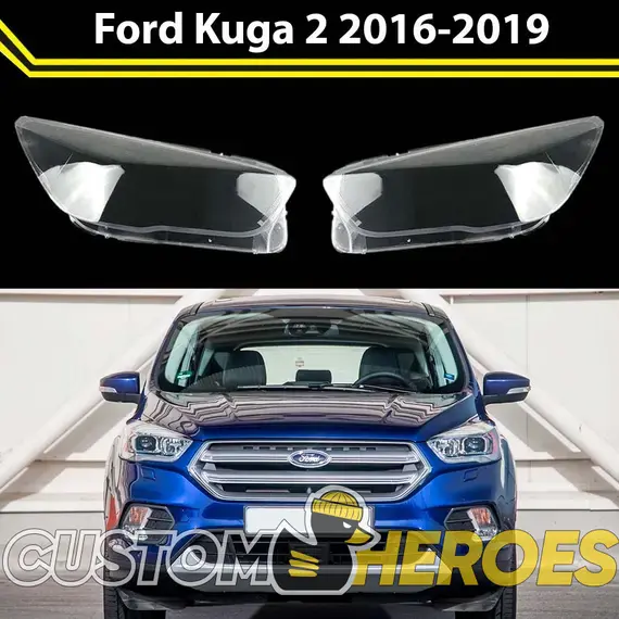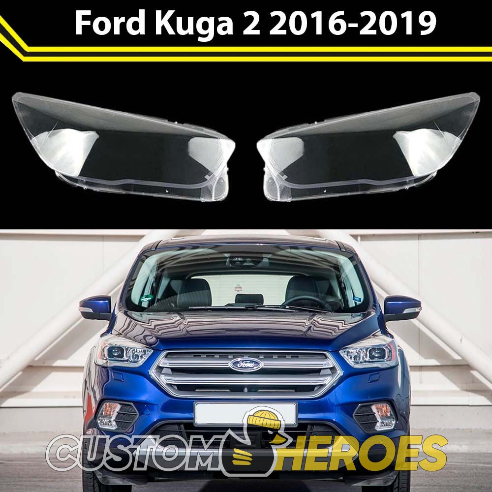 Высококачественные стекла фар из оптического поликарбоната с защитным УФ-лаком идеально подходят для замены оригинальных стекол фар на Ford Kuga 2016-2019 2 поколение [рестайлинг]