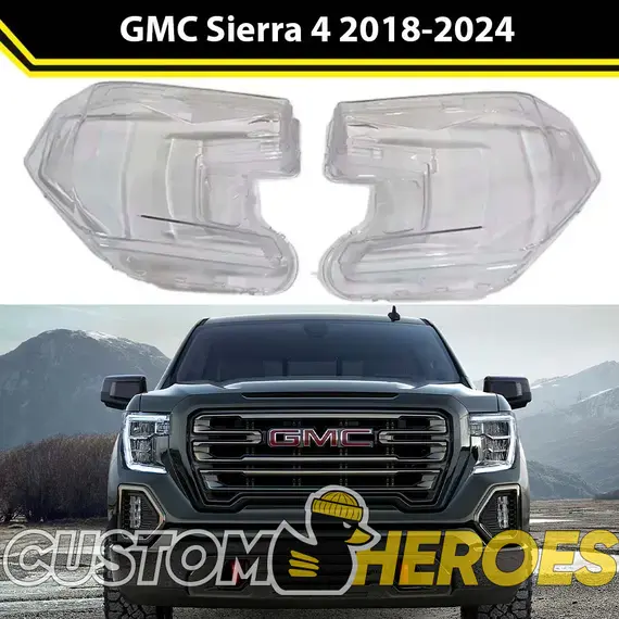 Высококачественные стекла фар из оптического поликарбоната с защитным УФ-лаком идеально подходят для замены оригинальных стекол фар на GMC Sierra 2018-2024 4 поколение