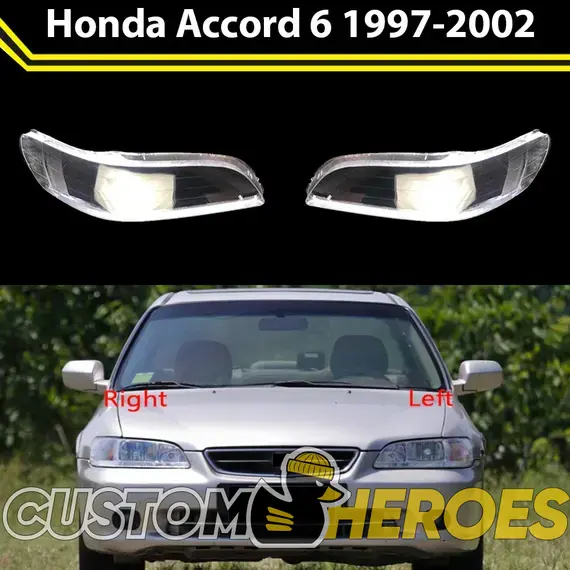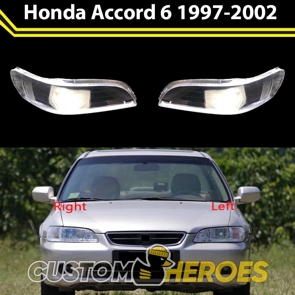 Высококачественные стекла фар из оптического поликарбоната с защитным УФ-лаком идеально подходят для замены оригинальных стекол фар на Honda Accord 1997-2002 6 поколение