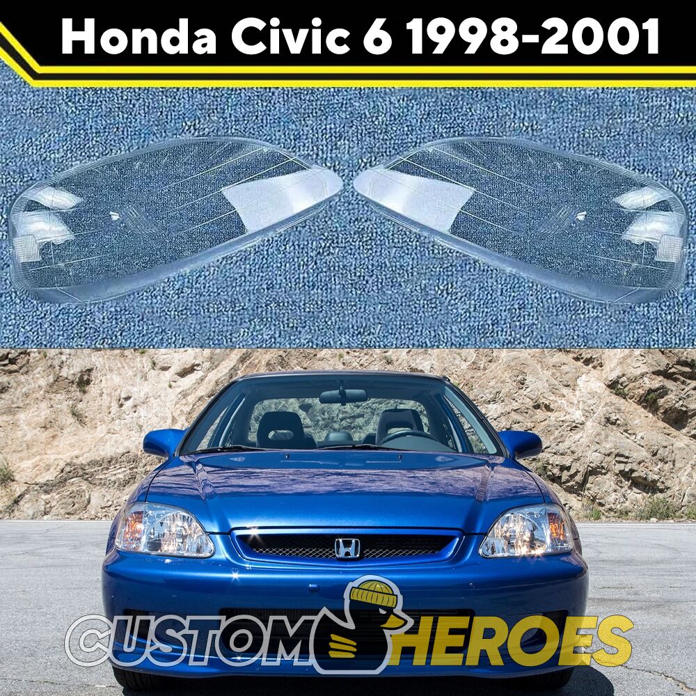 Высококачественные стекла фар из оптического поликарбоната с защитным УФ-лаком идеально подходят для замены оригинальных стекол фар на Honda Civic 1998-2002 6 поколение [рестайлинг]