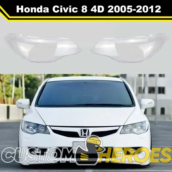Высококачественные стекла фар из оптического поликарбоната с защитным УФ-лаком идеально подходят для замены оригинальных стекол фар на Honda Civic 2005-2012 8 поколение