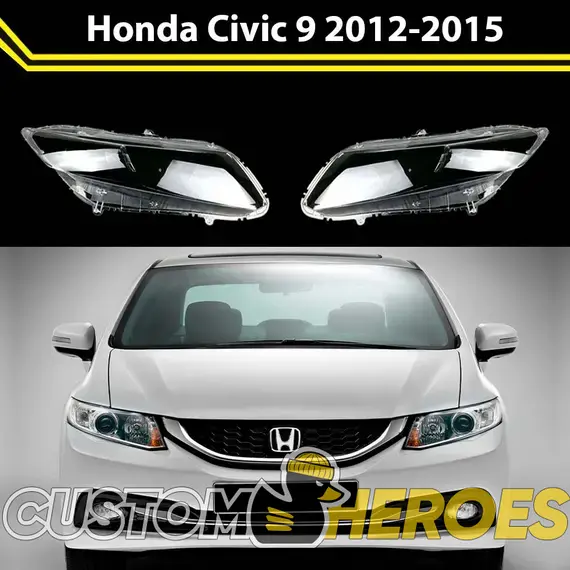 Высококачественные стекла фар из оптического поликарбоната с защитным УФ-лаком идеально подходят для замены оригинальных стекол фар на Honda Civic 2012-2015 9 поколение