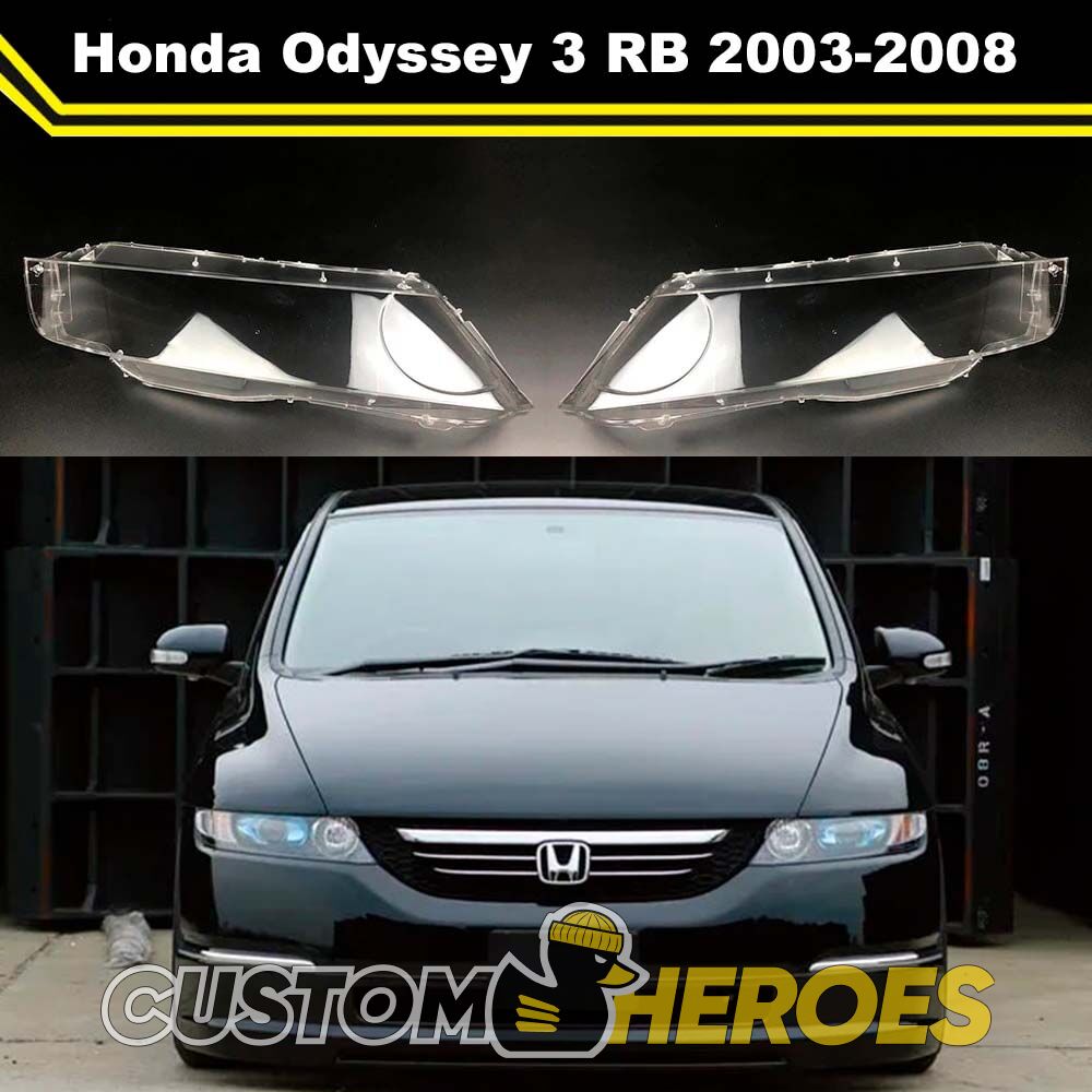 Высококачественные стекла фар из оптического поликарбоната с защитным УФ-лаком идеально подходят для замены оригинальных стекол фар на Honda Odyssey 2003-2008 3 поколение