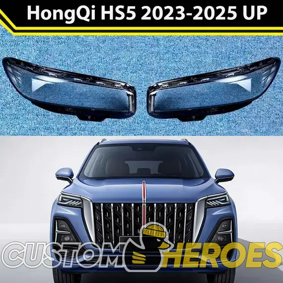 Высококачественные стекла фар из оптического поликарбоната с защитным УФ-лаком идеально подходят для замены оригинальных стекол фар на HongQi HS5 2023-2025 1 поколение [рестайлинг]