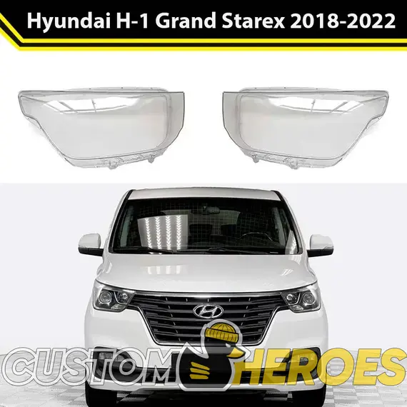 Высококачественные стекла фар из оптического поликарбоната с защитным УФ-лаком идеально подходят для замены оригинальных стекол фар на Hyundai H-1 2018-2022 Grand Starex [рестайлинг]