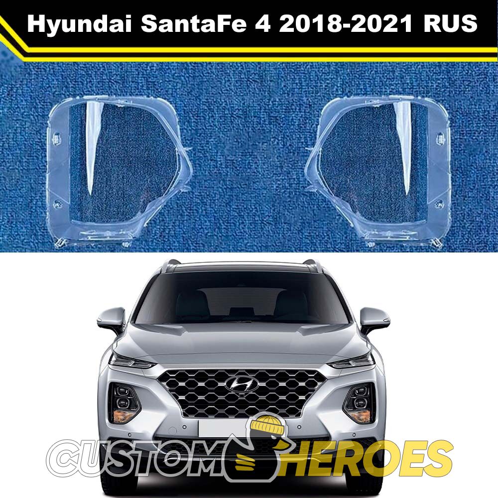 Высококачественные стекла фар из оптического поликарбоната с защитным УФ-лаком идеально подходят для замены оригинальных стекол фар на Hyundai Santa Fe 2018-2021 TM IV