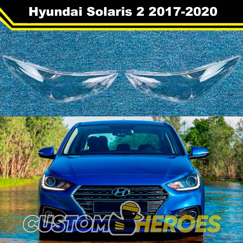 Высококачественные стекла фар из оптического поликарбоната с защитным УФ-лаком идеально подходят для замены оригинальных стекол фар на Hyundai Solaris 2017-2020 2 поколение