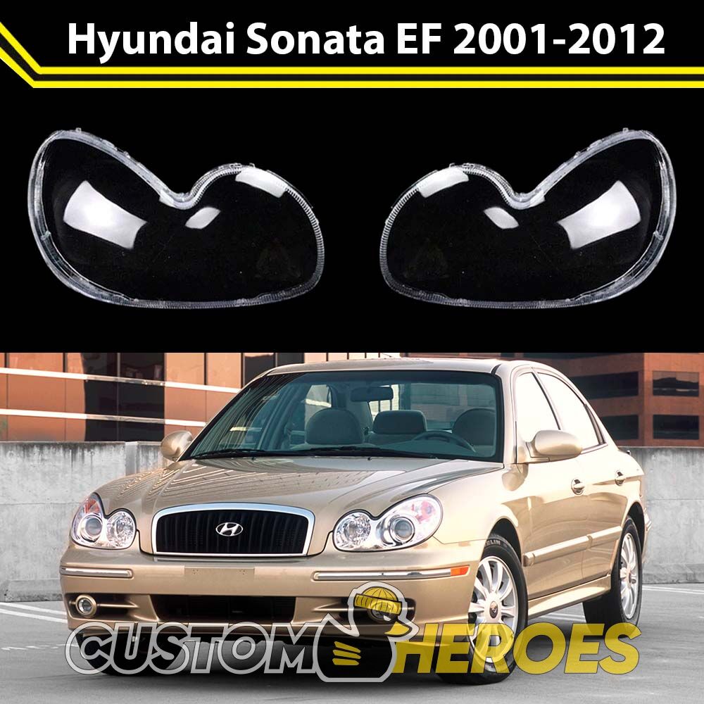 Высококачественные стекла фар из оптического поликарбоната с защитным УФ-лаком идеально подходят для замены оригинальных стекол фар на Hyundai Sonata 2001-2012 EF [рестайлинг]