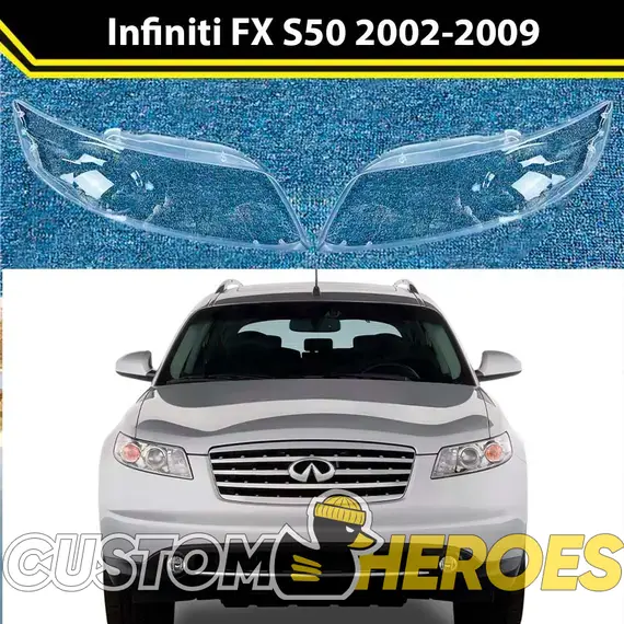 Высококачественные стекла фар из оптического поликарбоната с защитным УФ-лаком идеально подходят для замены оригинальных стекол фар на Infiniti FX 2002-2009 1 поколение S50