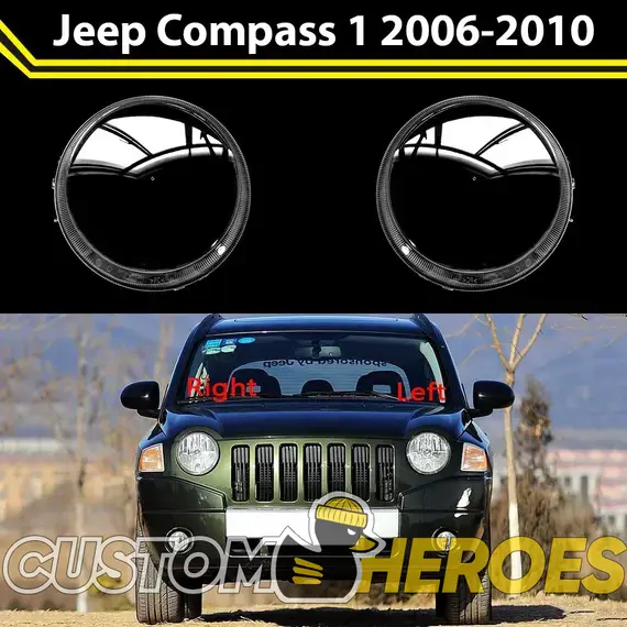 Высококачественные стекла фар из оптического поликарбоната с защитным УФ-лаком идеально подходят для замены оригинальных стекол фар на Jeep Compass 2006-2010 1 поколение
