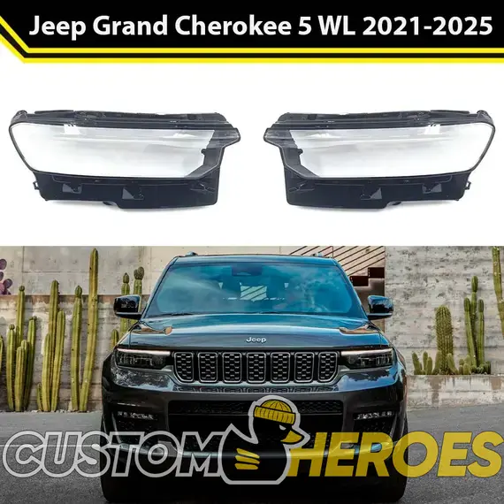 Высококачественные стекла фар из оптического поликарбоната с защитным УФ-лаком идеально подходят для замены оригинальных стекол фар на Jeep Grand Cherokee 2021-2025 WL