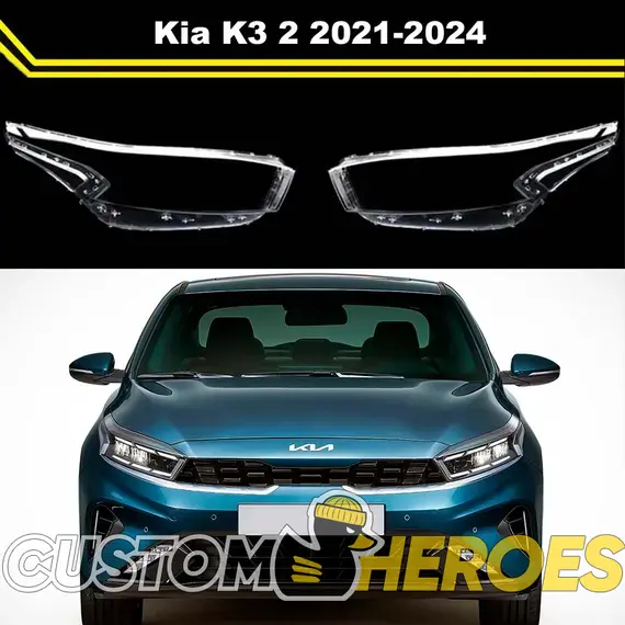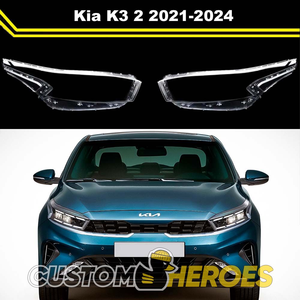 Высококачественные стекла фар из оптического поликарбоната с защитным УФ-лаком идеально подходят для замены оригинальных стекол фар на Kia K3 2021-2024 2 поколение [рестайлинг]