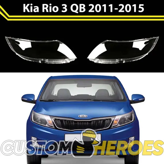 Высококачественные стекла фар из оптического поликарбоната с защитным УФ-лаком идеально подходят для замены оригинальных стекол фар на Kia Rio 2011-2015 3 поколение