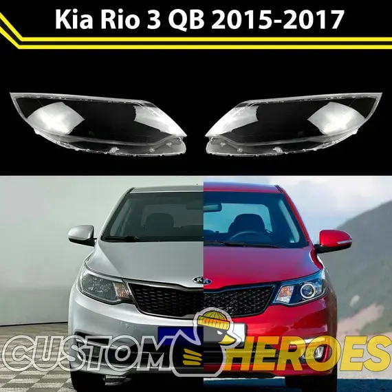 Высококачественные стекла фар из оптического поликарбоната с защитным УФ-лаком идеально подходят для замены оригинальных стекол фар на Kia Rio 2015-2017 3 поколение [рестайлинг]