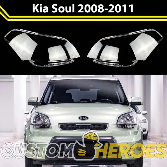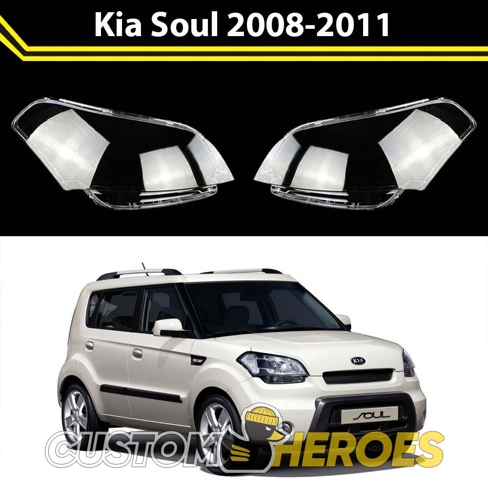 Высококачественные стекла фар из оптического поликарбоната с защитным УФ-лаком идеально подходят для замены оригинальных стекол фар на Kia Soul 2008-2011 1 поколение